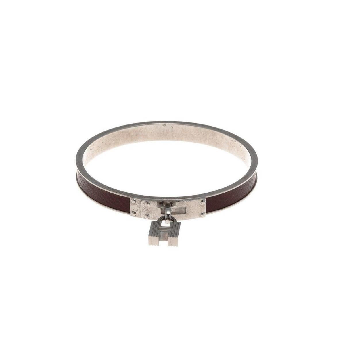 Hermes Brown Kelly H 19c Bangle. Hermes Brown leather Kelly H 19c Bangle with silver-tone hardware, hook closure. Measurements: Inside Circumference 7.75 in / 20 cm Width: 0.4 in / 1 cm CONDITION: Pre-Owned Good Overall Condition. Please see photograp