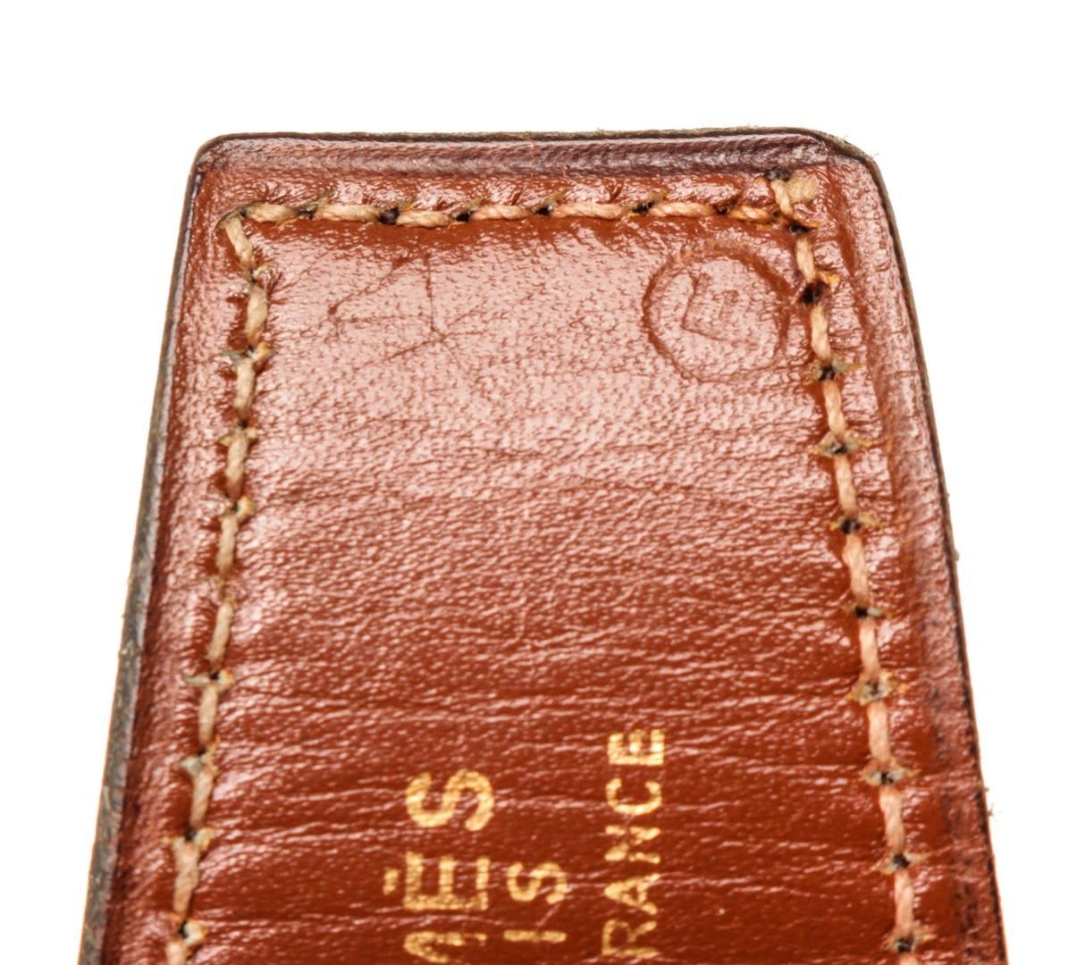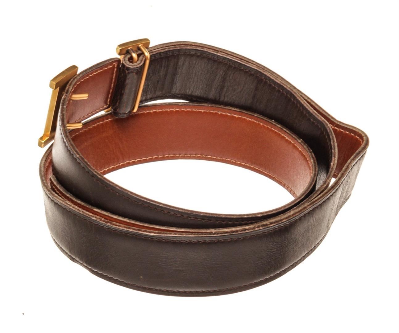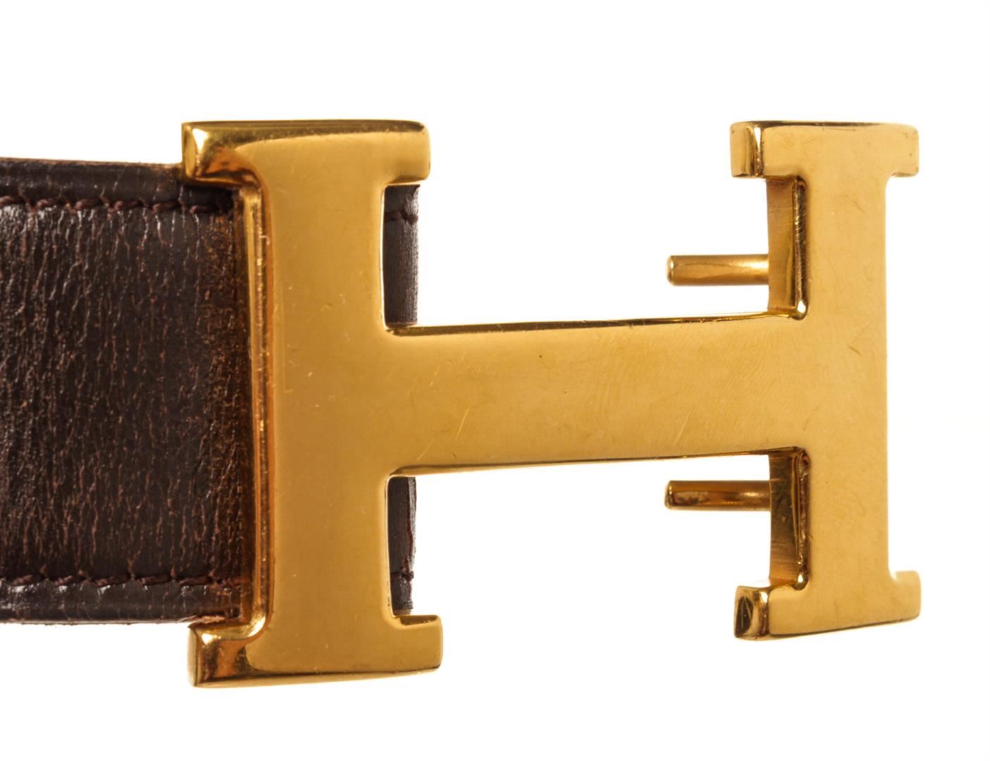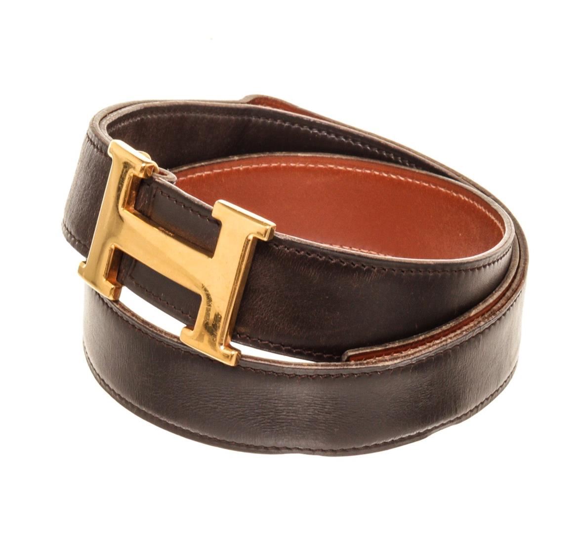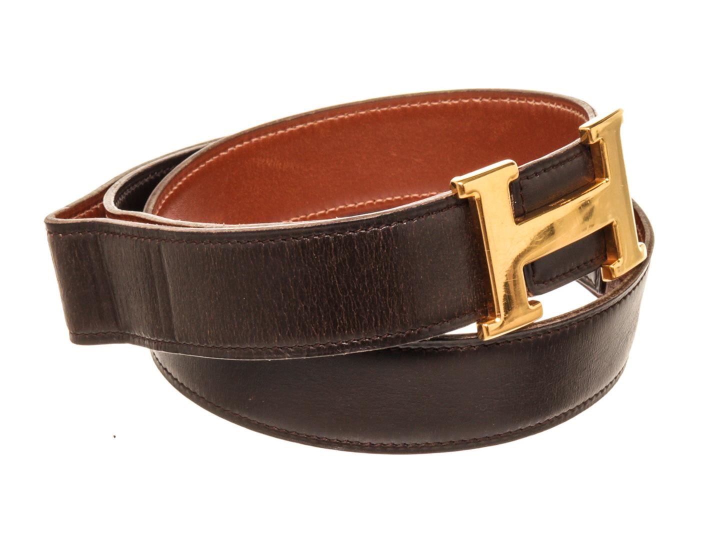 One Hermes Brown Leather Constance Belt. Item is sold AS-IS. Please check photos and descriptions for all available details. Hermes Brown Leather Constance Belt with leather, gold-tone hardware and push lock closure.
