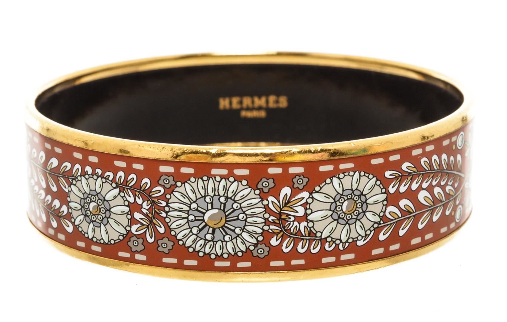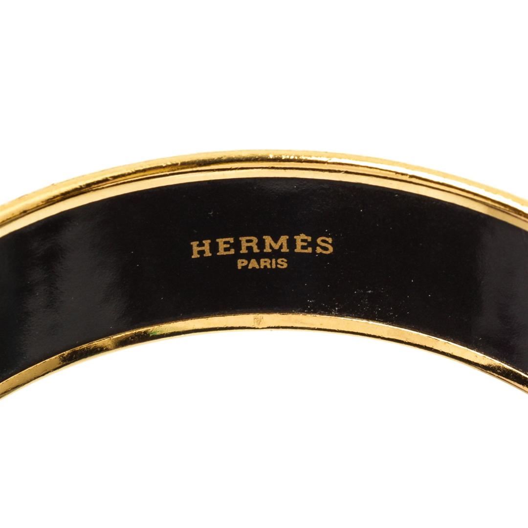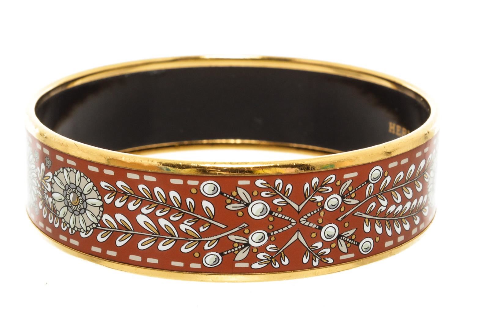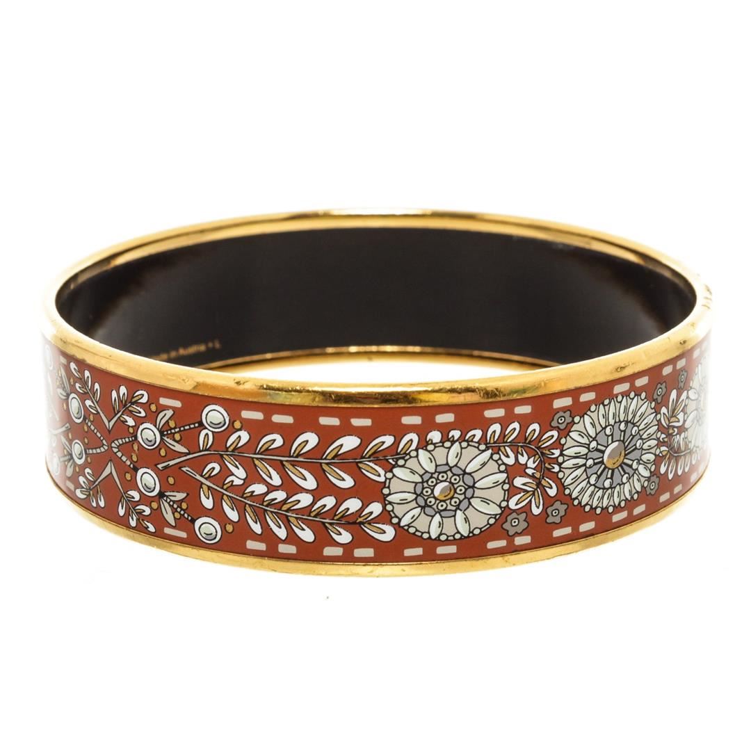 Hermes gold plated brown white multicolor enamel bangle bracelet. Authentic.