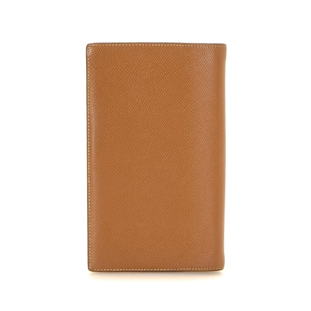 Hermes Camel Leather Flip Wallet. Please see photos and description for all available information! Hermes Camel Leather Flip Wallet with gold-tone hardware, brown leather trim, interior flap pockets, leather lining, bifold closure.