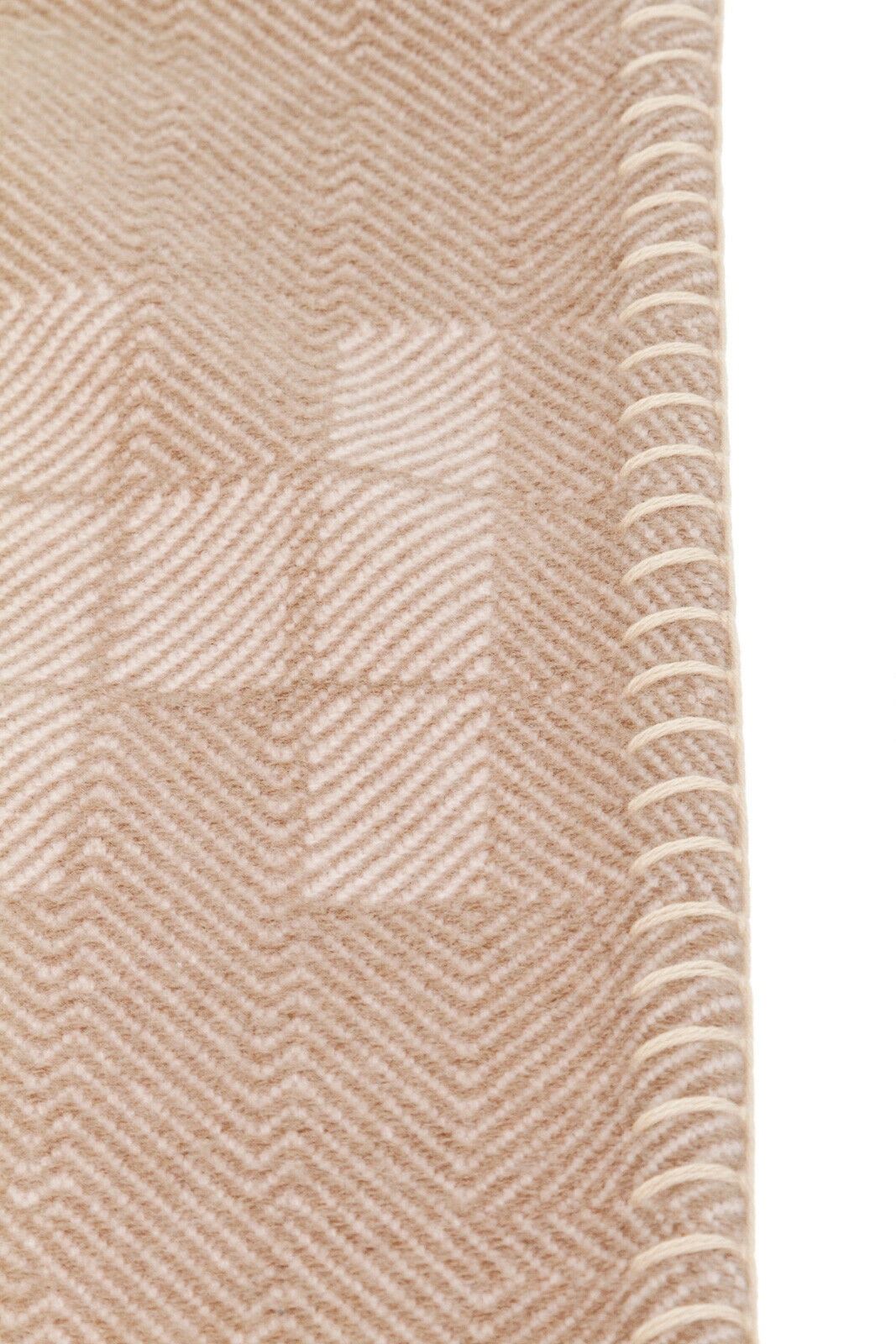 Description: Coco and Chamomile Avalon blanket made of wool and cashmere blend with beige whip stitch detail at the edges.