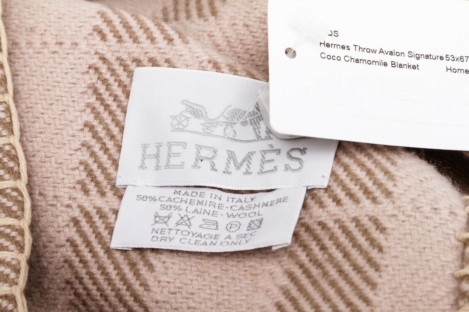 Description: Coco and Chamomile Avalon blanket made of wool and cashmere blend with beige whip stitch detail at the edges.