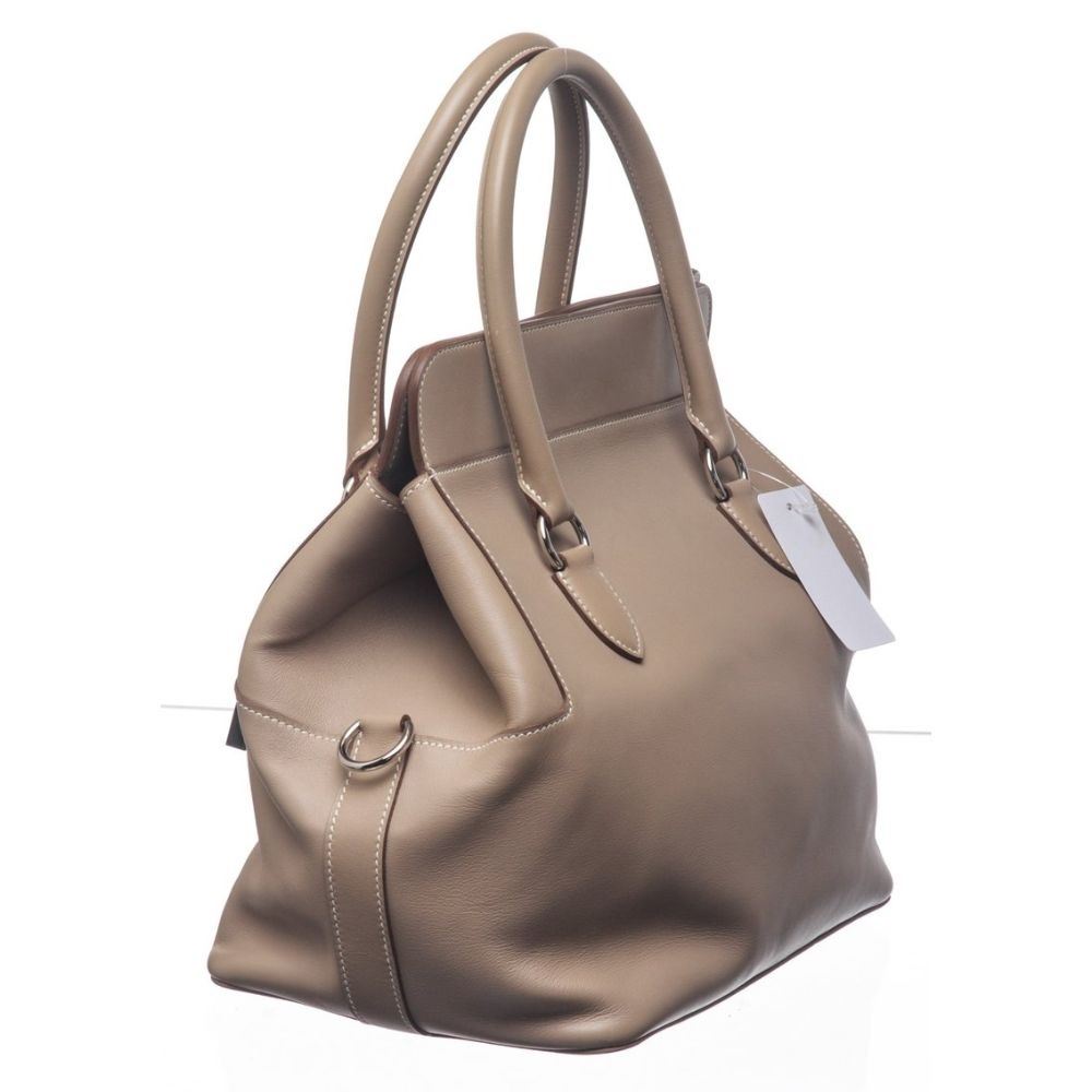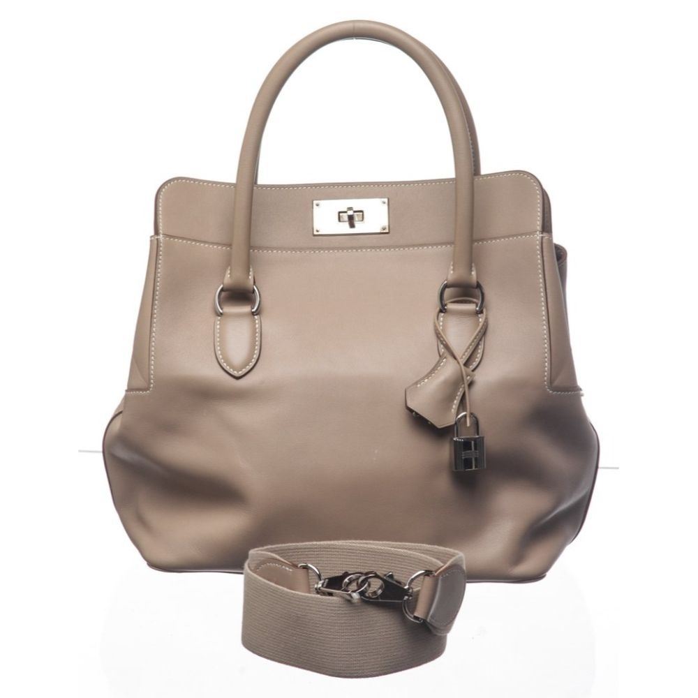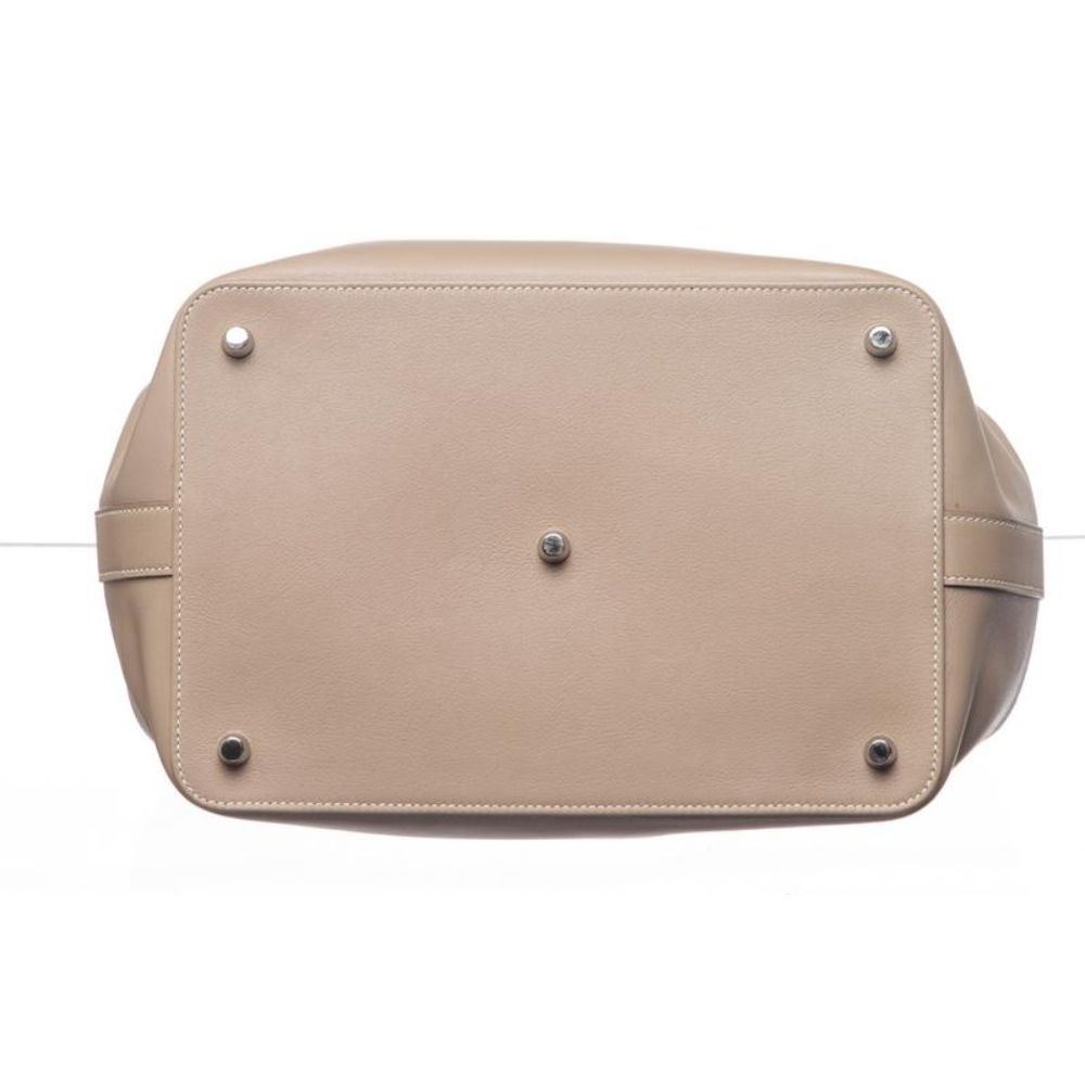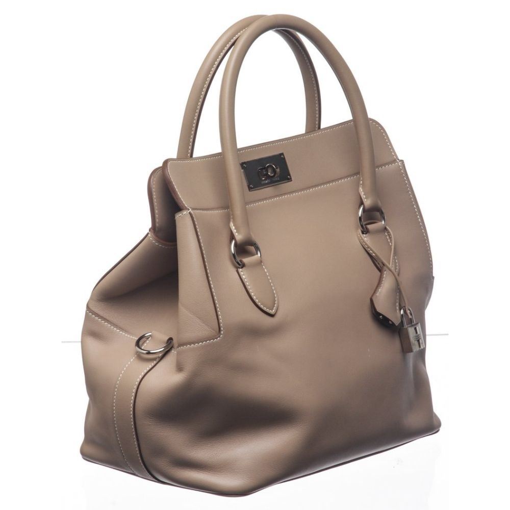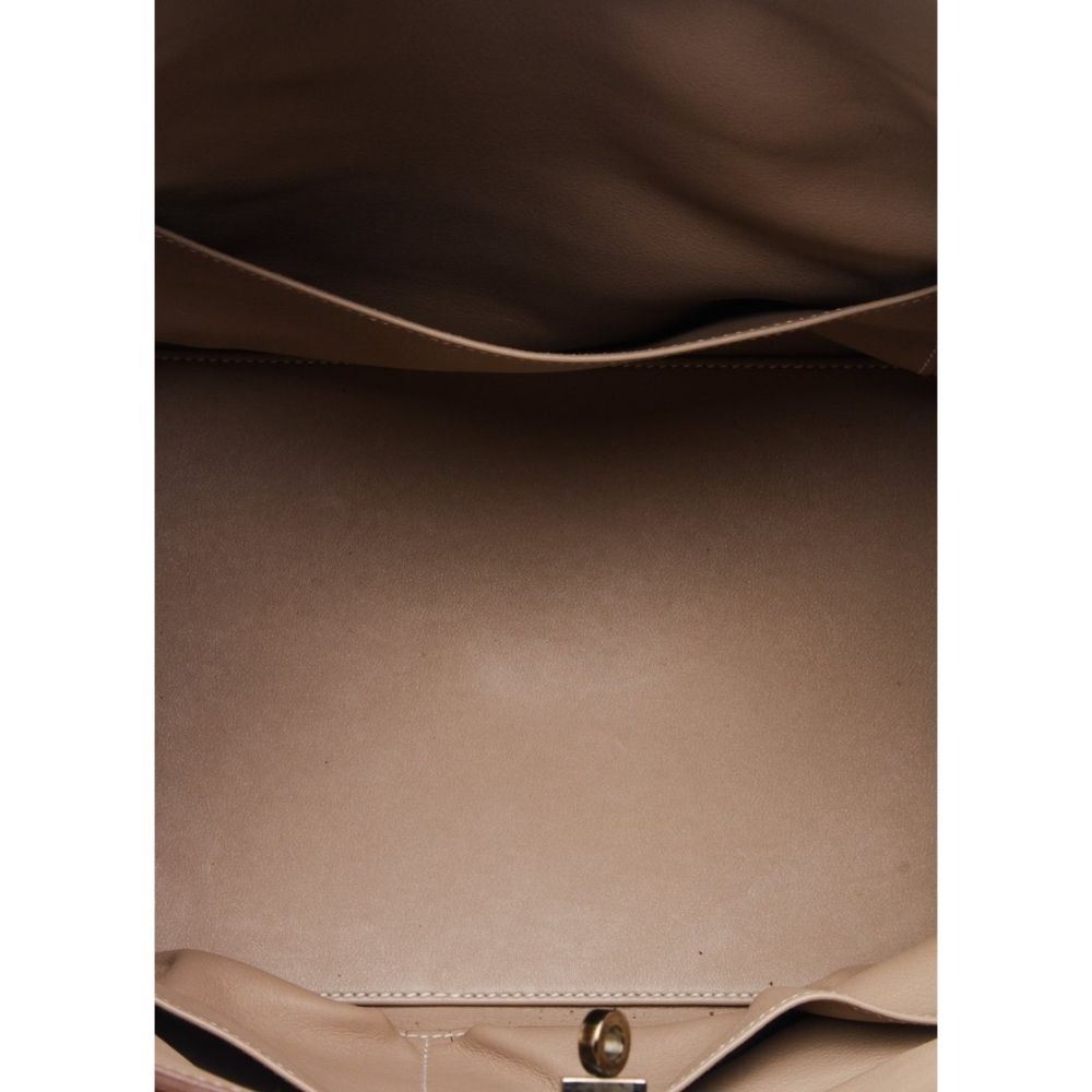This stylish tote is crafted of smooth swift calfskin leather in brown. The bag features rolled leather top handles with palladium metal links, an optional shoulder strap with palladium clasps, and palladium metal frontal turn lock with a palladium padlock and a hanging clochette for keys. The top opens to a fabric interior spacious enough for everyday necessities.