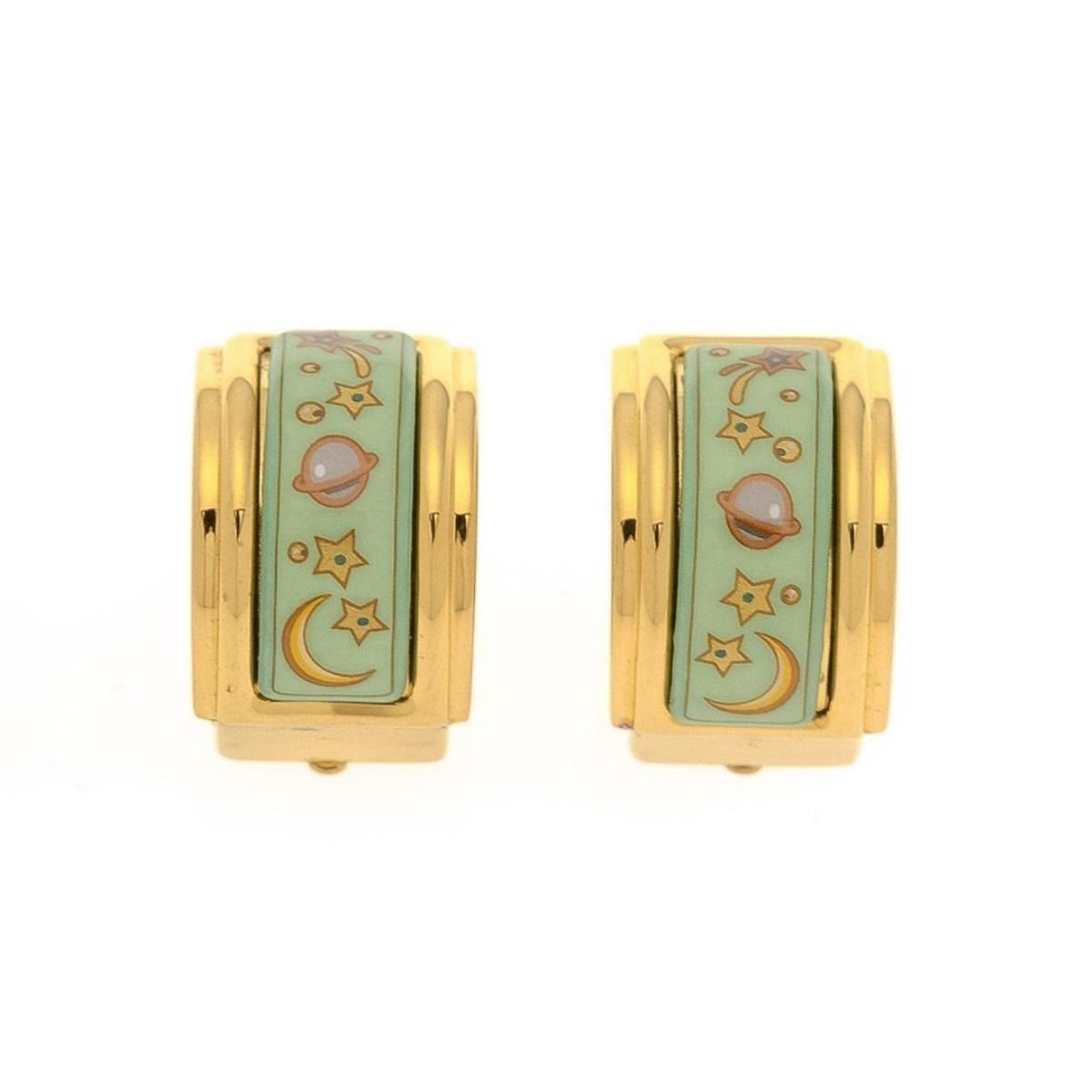 Hermes Gold Enamel Clip-on Earrings with gold-tone hardware. CONDITION: Pre-Owned Good overall, please see photographs for detail.
