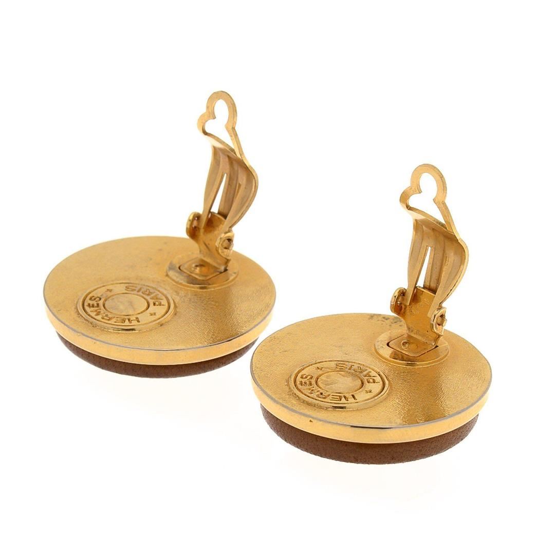 Hermes Gold Leather Clip-on Earringswith gold-tone hardware. Measurements: Length: 1.2 in / 3 cm Width: 1.2 in / 3 cm Condition: Pre-Owned Good overall, please see photographs for detail.