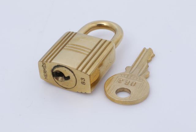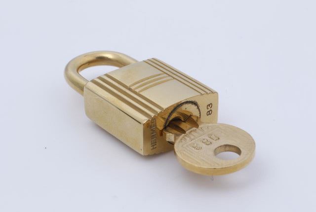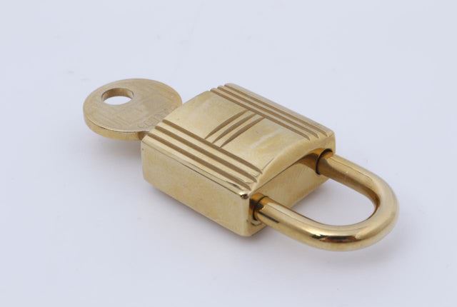 Hermes Cadena Lock and Keys with gold-plated hardware, one padlock and 2 pieces of keys.
