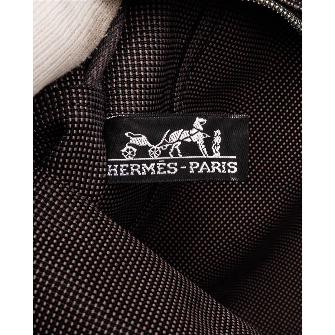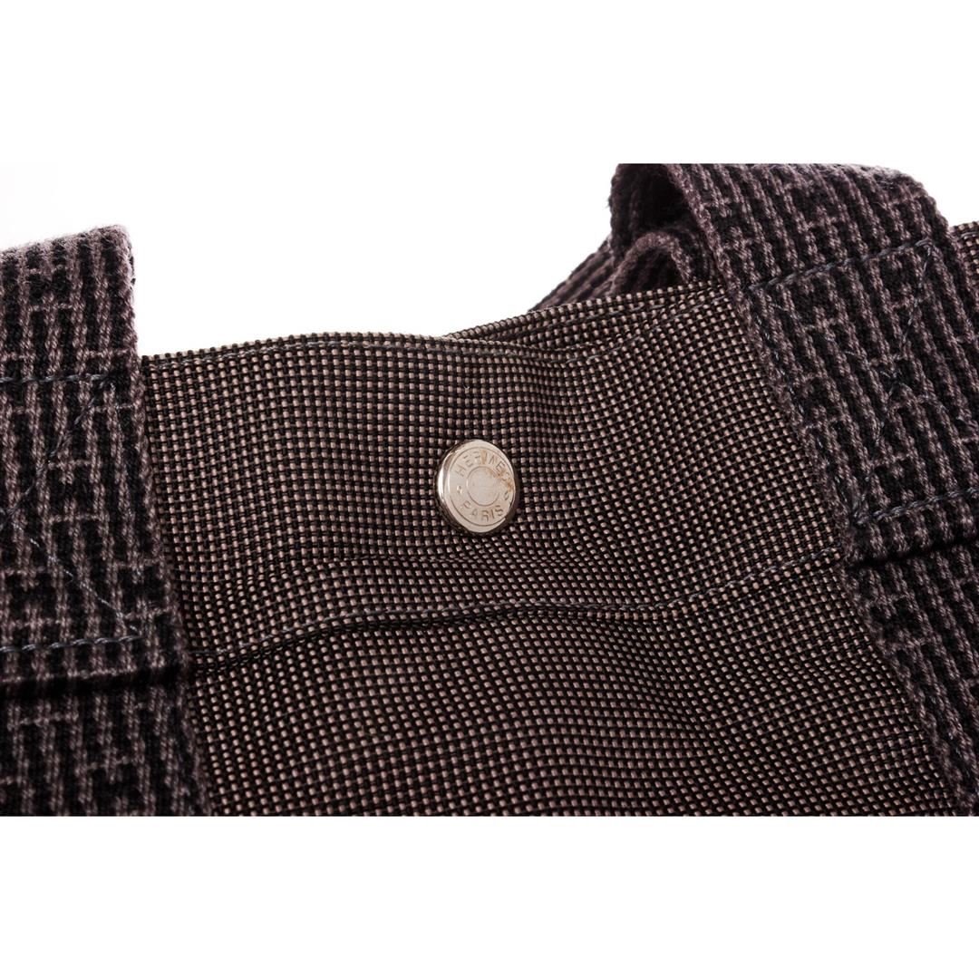 Gray and Black canvas Hermès Fourre Tout MM with palladium-plated hardware, tonal canvas trim, dual flat top handles, six exterior slit pockets, tonal canvas lining, single interior slit pocket and zip closure at top with additional three snap closures.