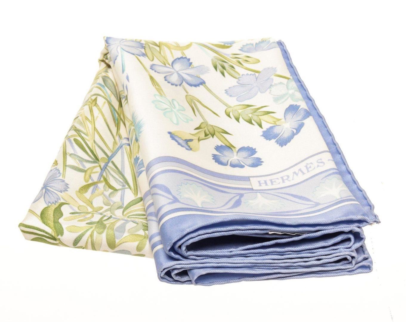 Hermes Green Multicolor Silk Scarf with gold-tone hardware.