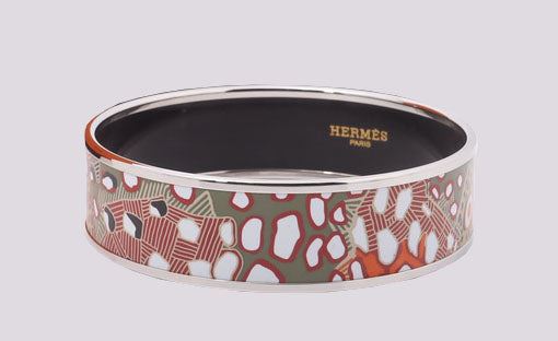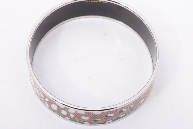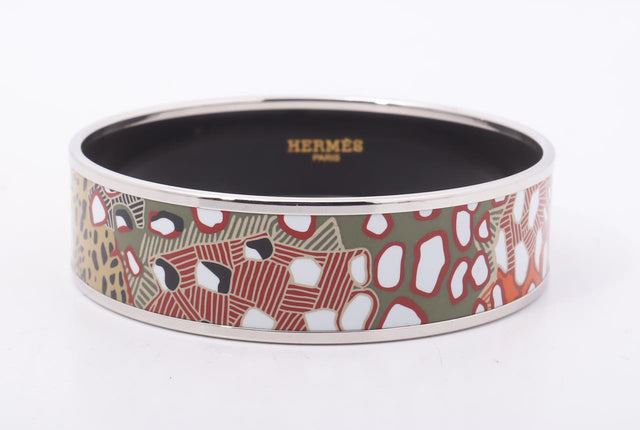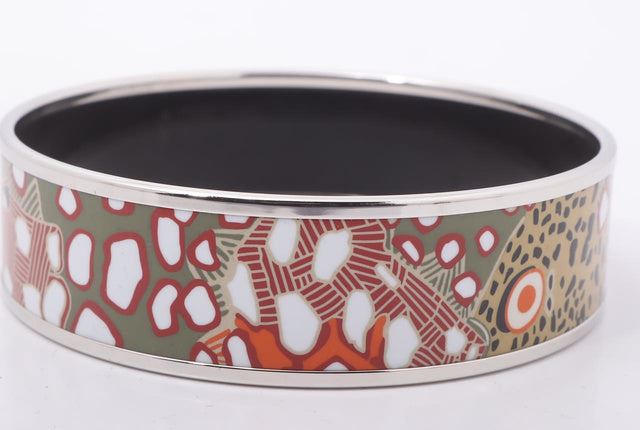 Hermes GM bangle bracelet features palladium hardware with multicolor Underwater Grands Fonds print.