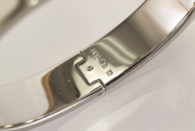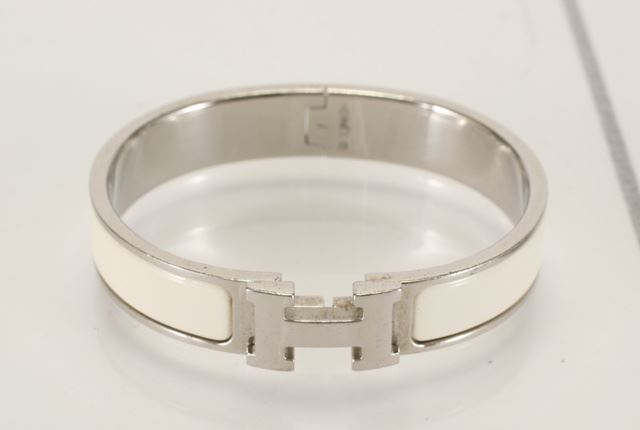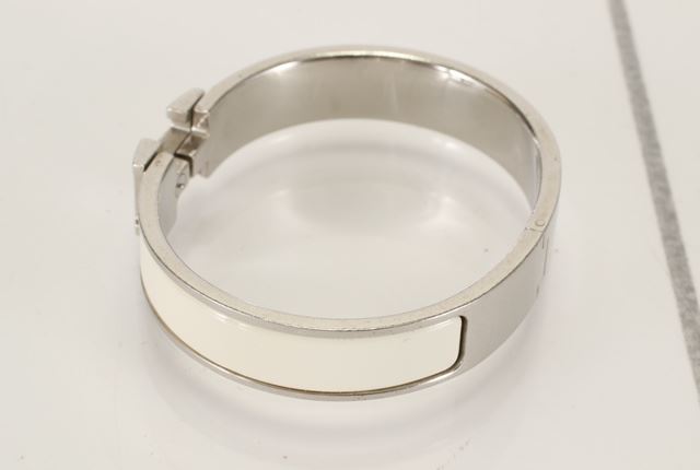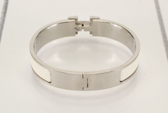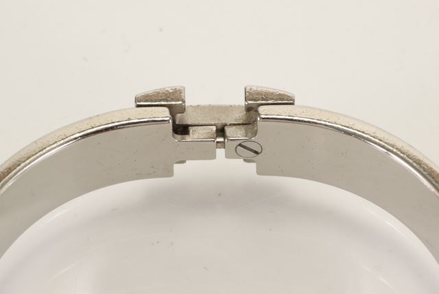 Ivory metal Hermes Clic Clac bangle with Palladium hardware and CC turn-lock closure.