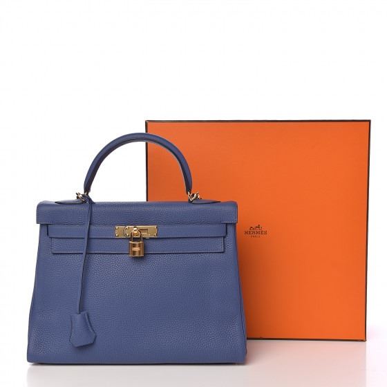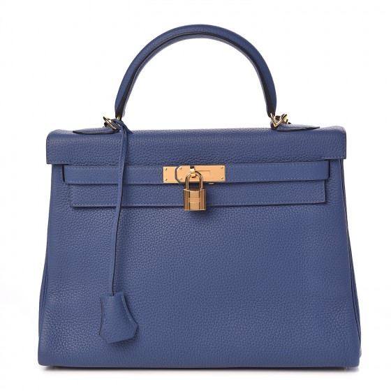 Style: Taurillon Clemence Kelly Retourne 32 Bleu Brighton Handbag