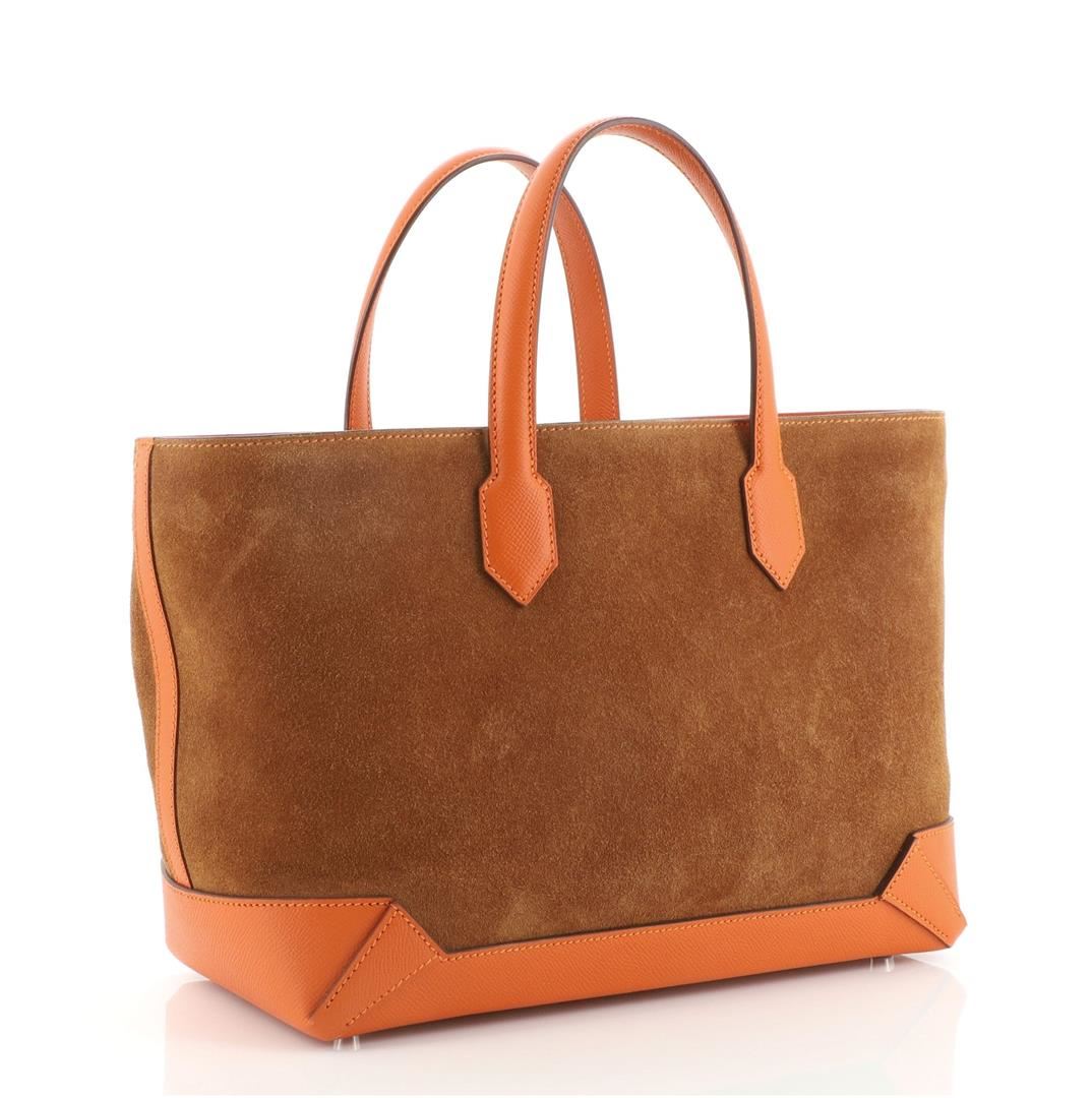 Hermes Maxibox Cabas Doblis Suede with Epsom 30    Brown Epsom Leather