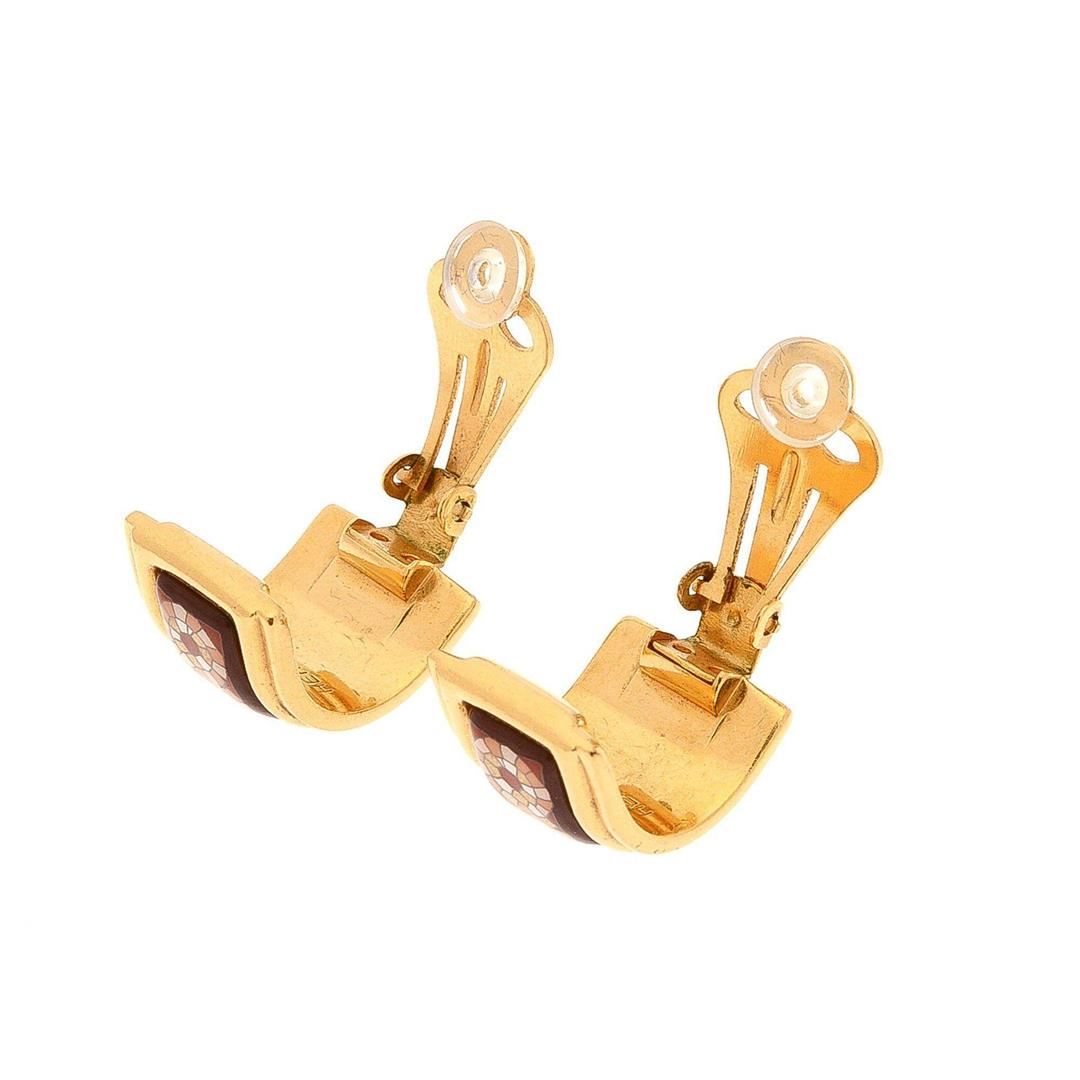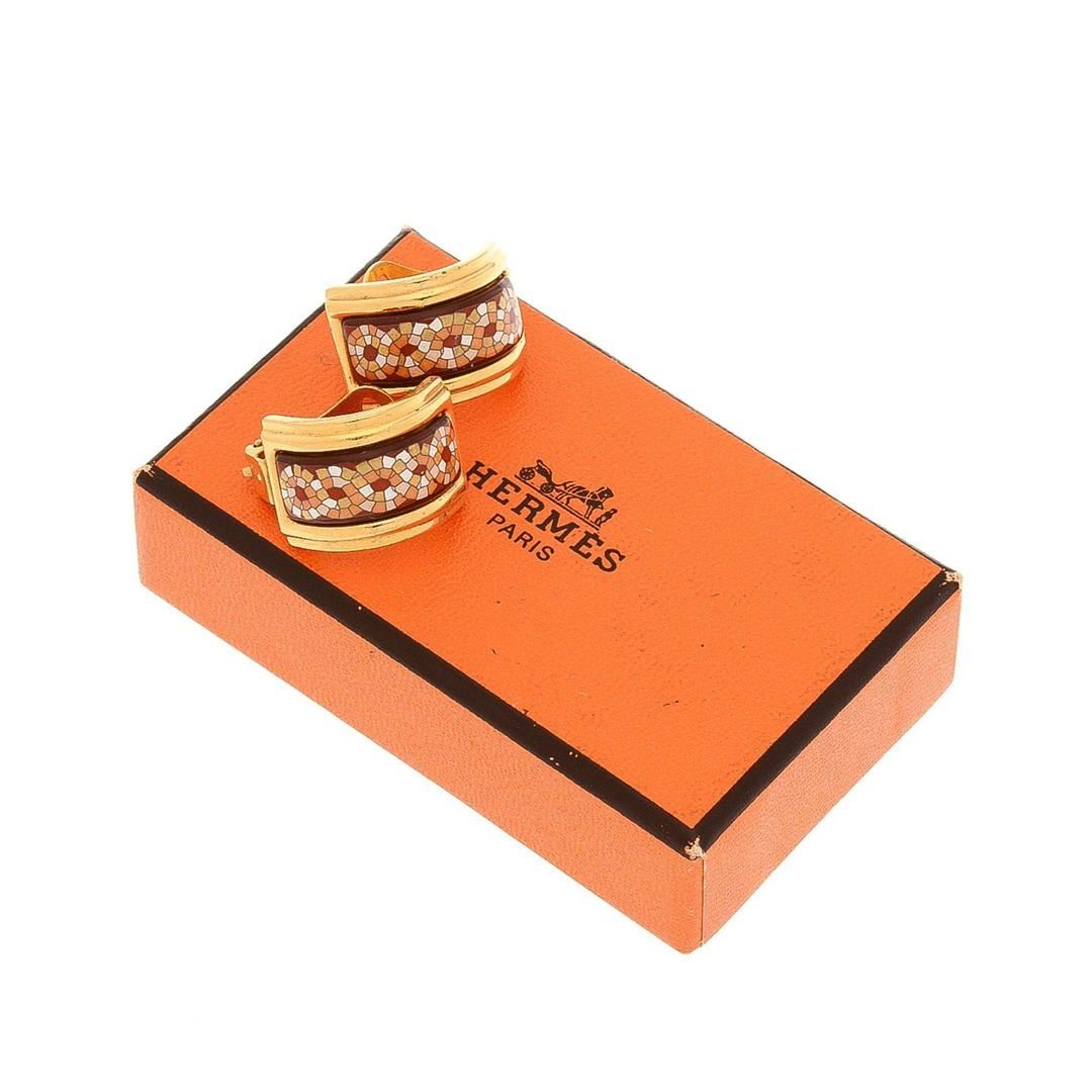 Hermes Multi Enamel Clip-on Earrings with gold-tone hardware. Measurements: Length: 0.8 in / 2 cm Width: 0.7 in / 2 cm Condition: Pre-Owned Good overall, please see photographs for detail.