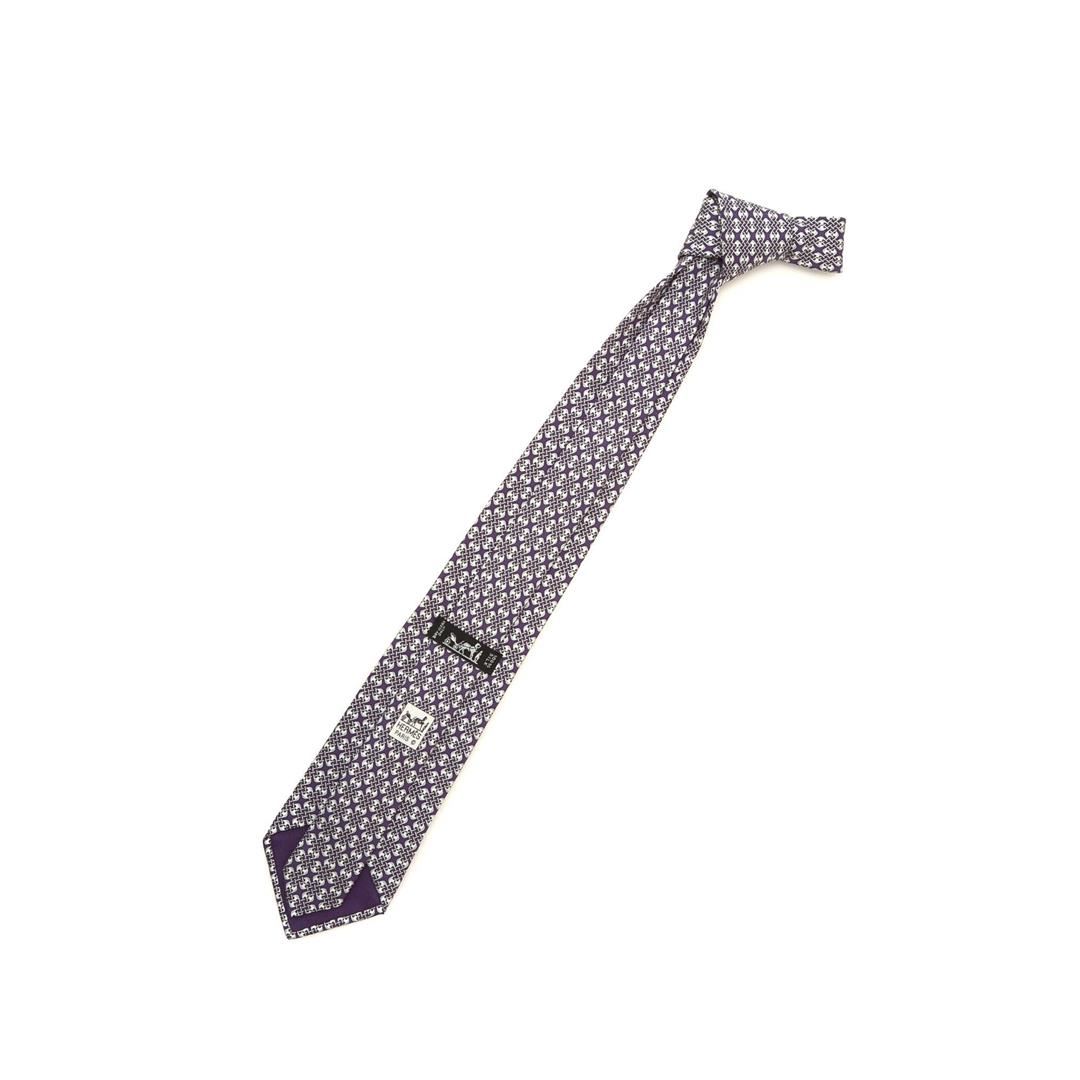 Hermes Multi Printed Silk Tie with silver-tone hardware.