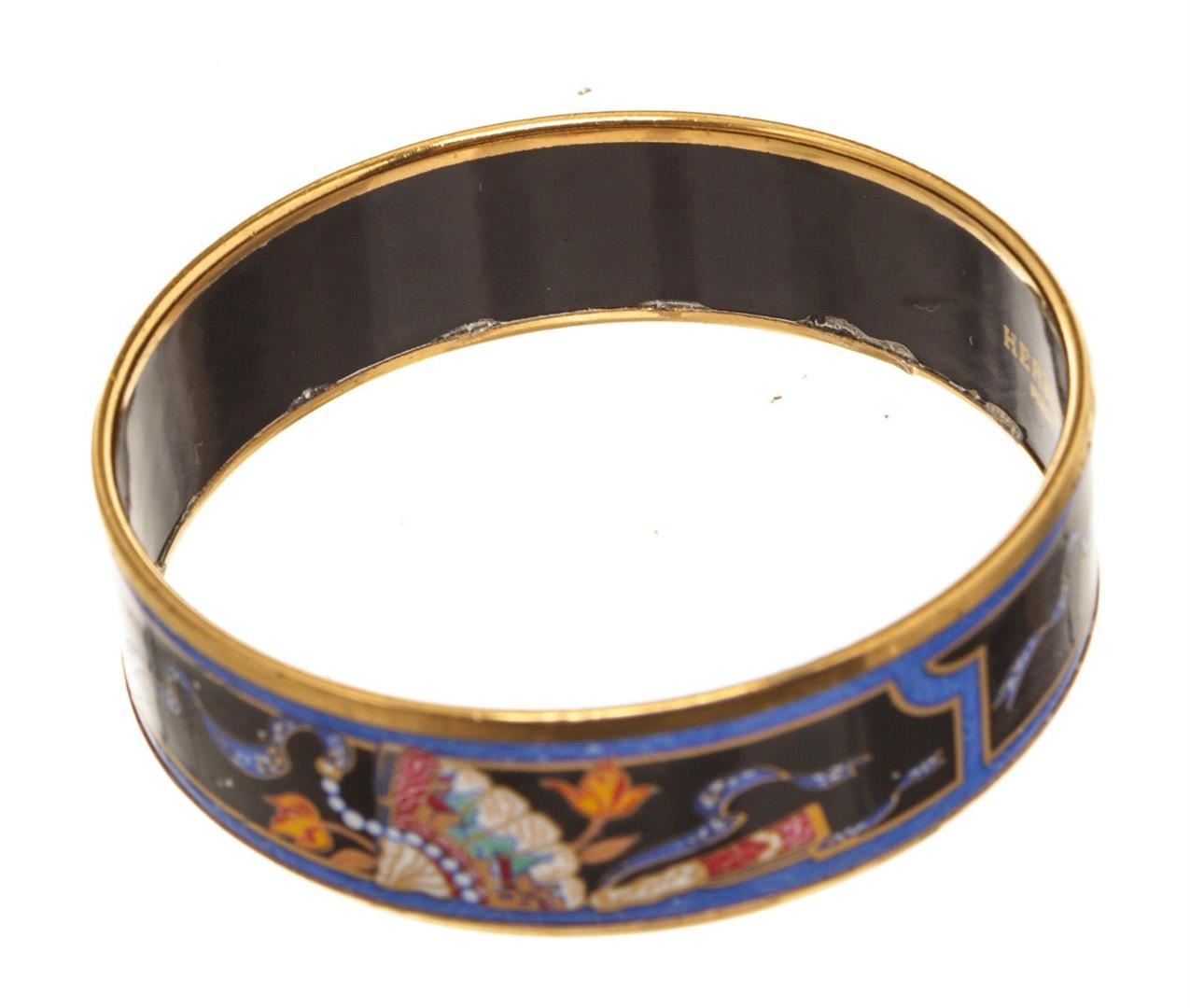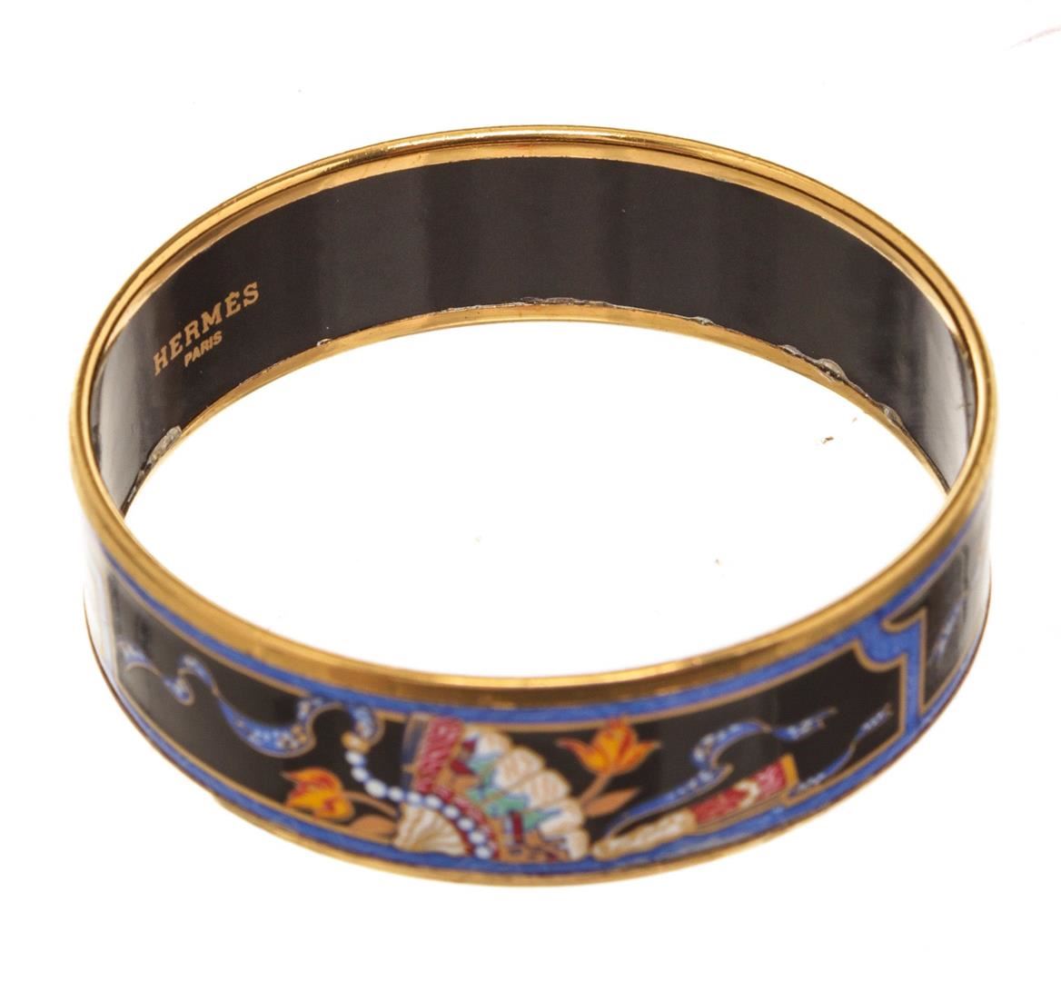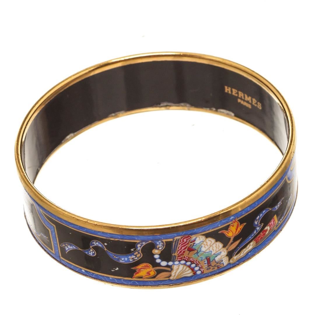 Hermes Multicolor Enamel Bangle with gold-tone hardware.