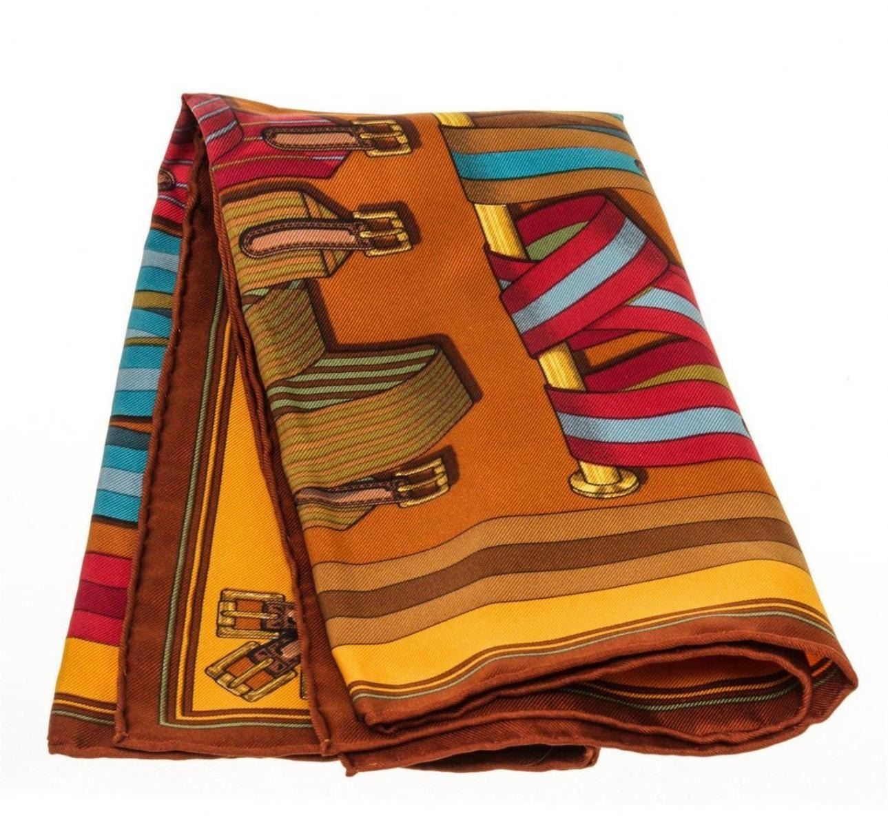 Hermes Multicolor Musee Vivant Scarf. Hermes Multicolor Musee Vivant Scarf with gold-tone hardware.