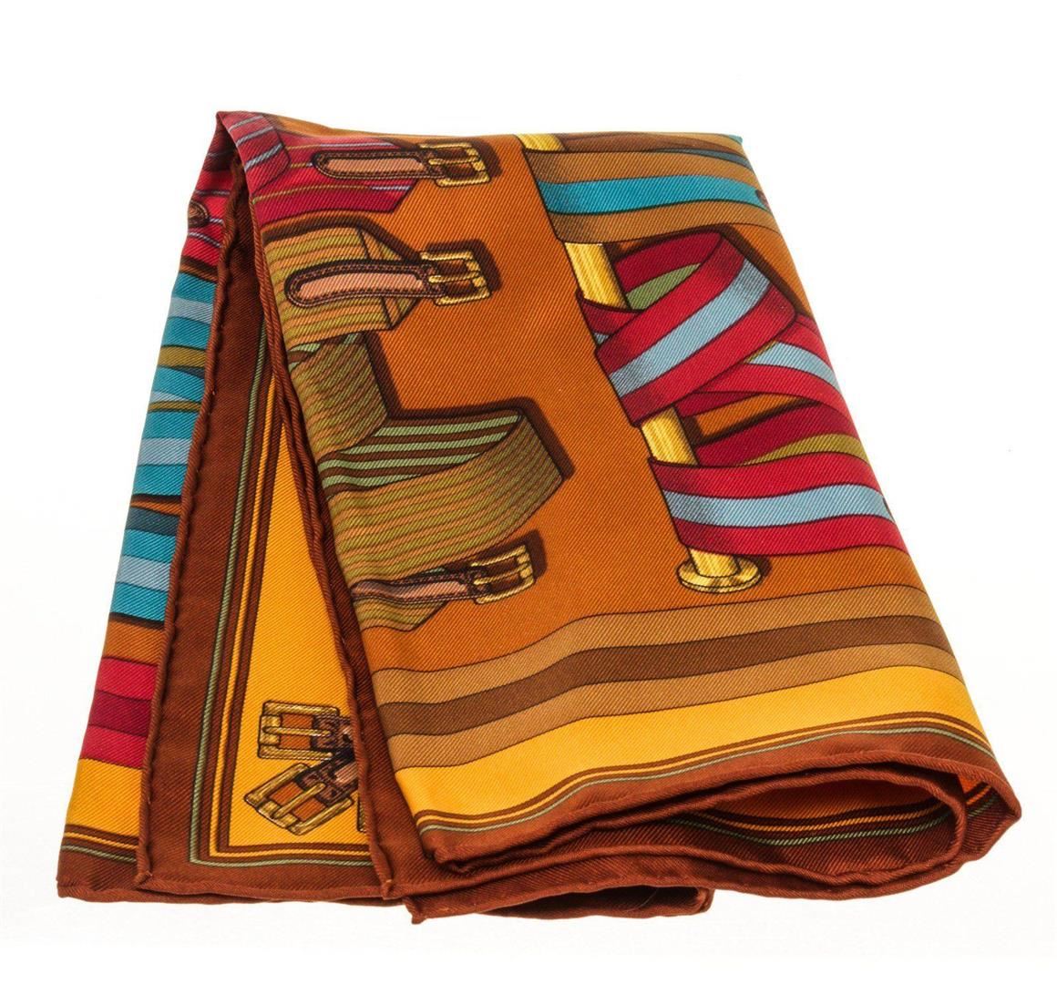 Hermes Multicolor Musee Vivant Scarf with gold-tone hardware.