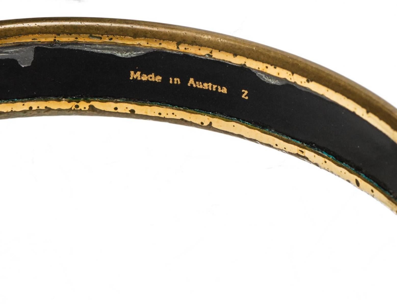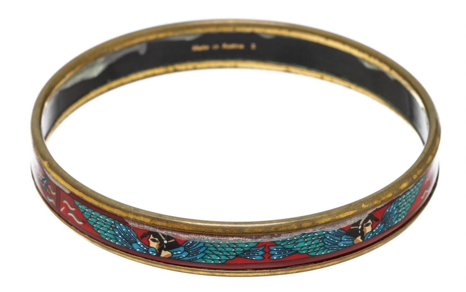 One Hermes Multicolor Narrow Printed Enamel Bangle Bracelet. K yellow-gold-plated brass Hermès Narrow bracelet featuring a printed enamel inlay at a high polish finish. Please note: Enamel trim wear, please see photographs.