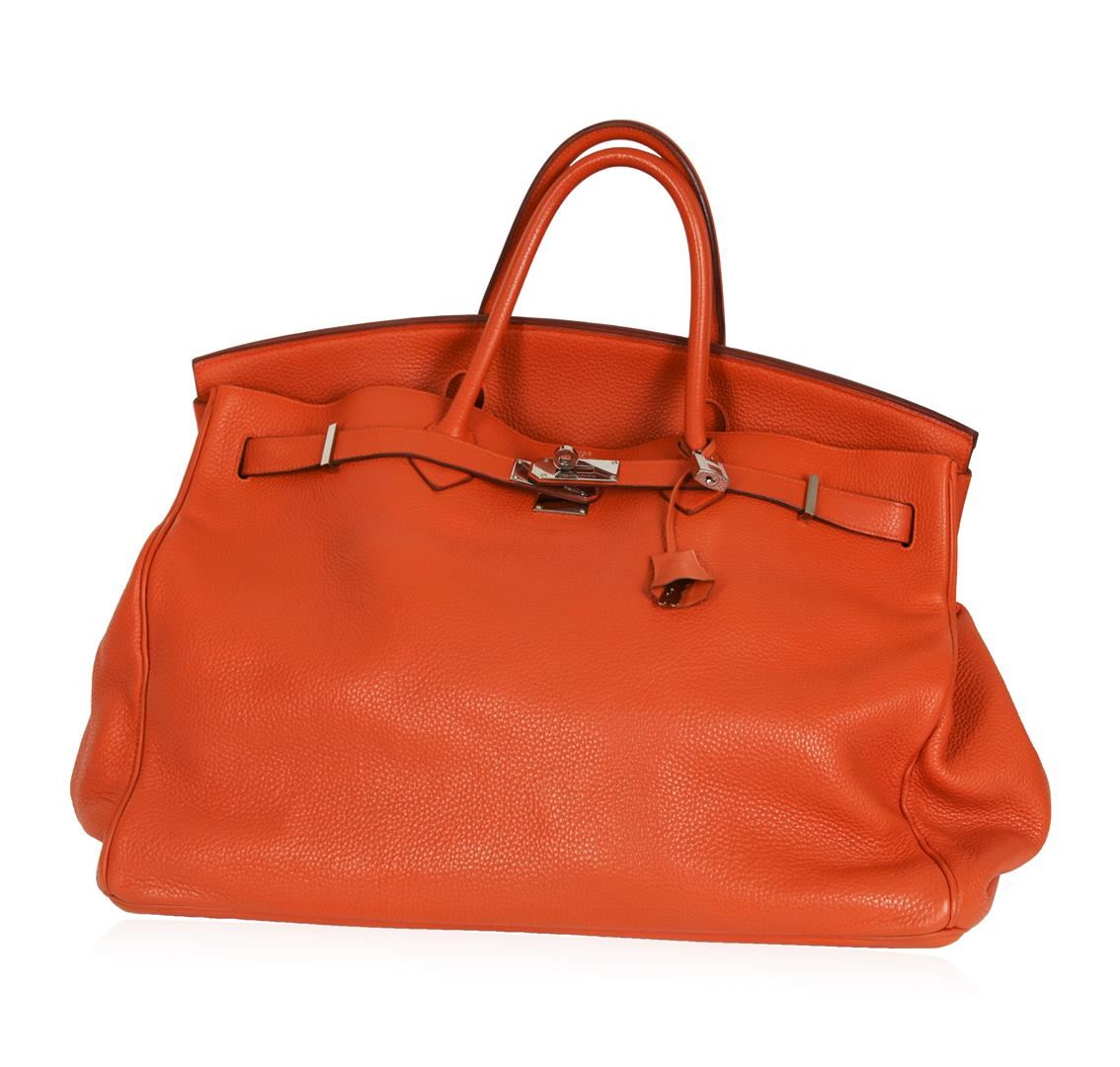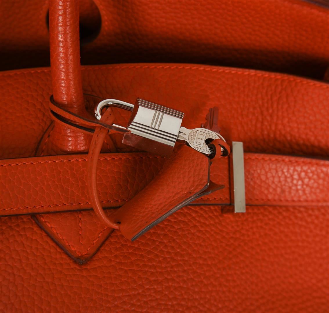 100% authentics Hermes Orange Clemence Leather Handbag with Palladium gold hardware - CODE 47 L I in Box - Comes with Clochette, Lock and keys