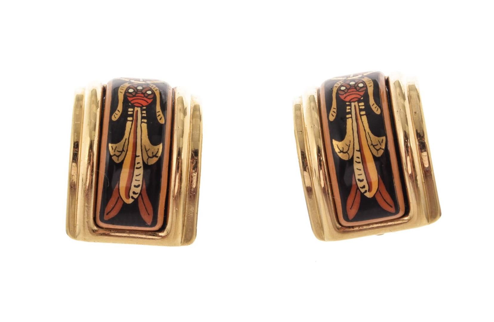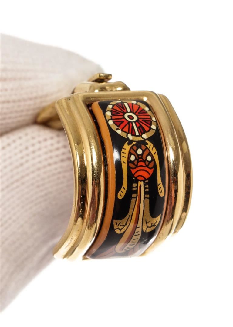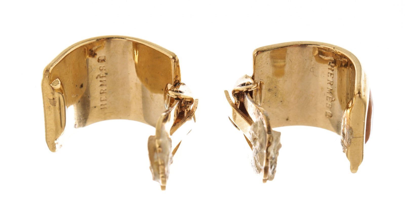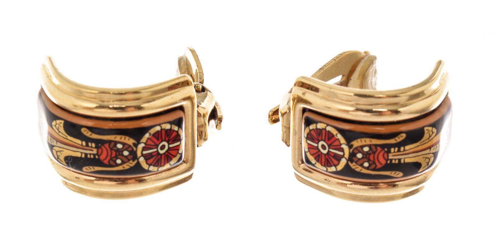 Hermes Orange Enamel Clip-on Earrings feature clip-on backs, this pair comes made from gold-plated metal and beautified with printed enamel.