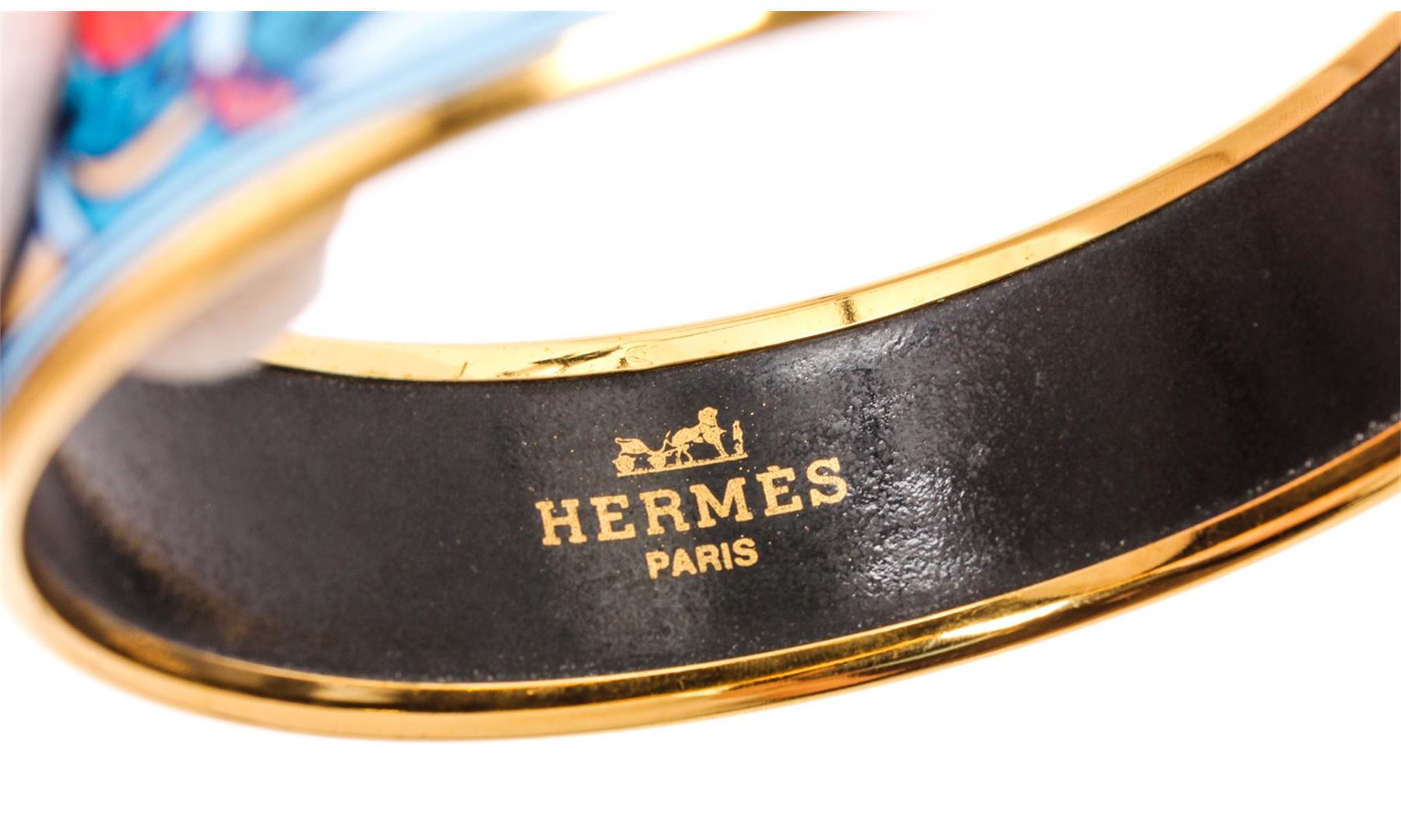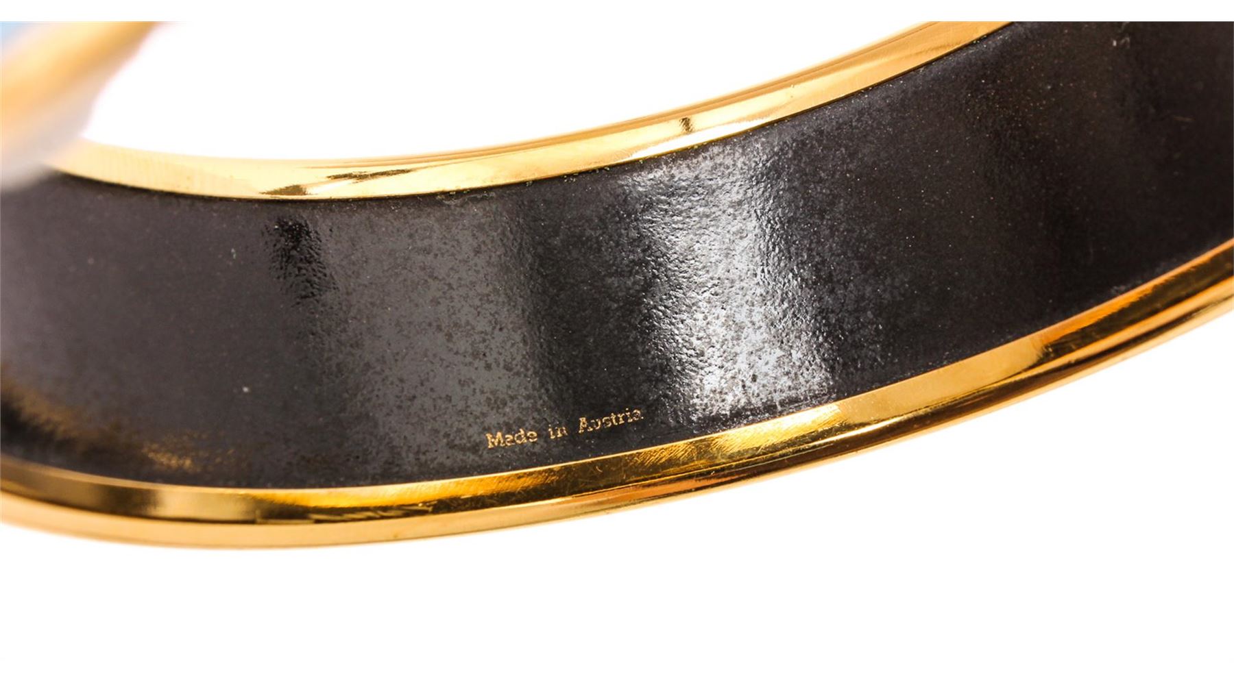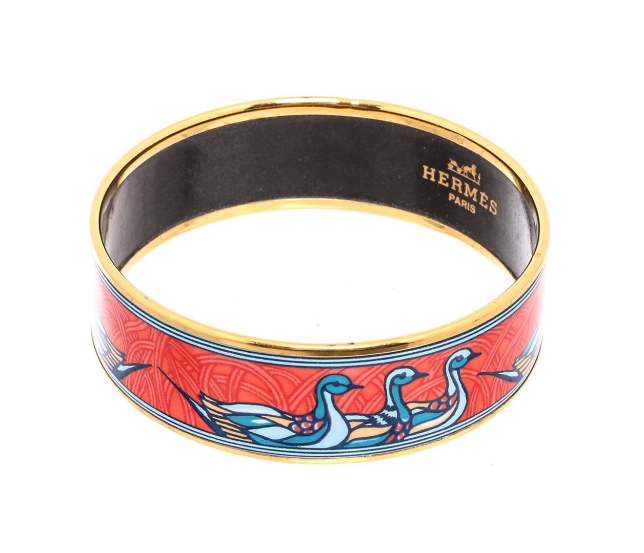 Hermes gold plated orange multicolor enamel duck print bangle bracelet.
