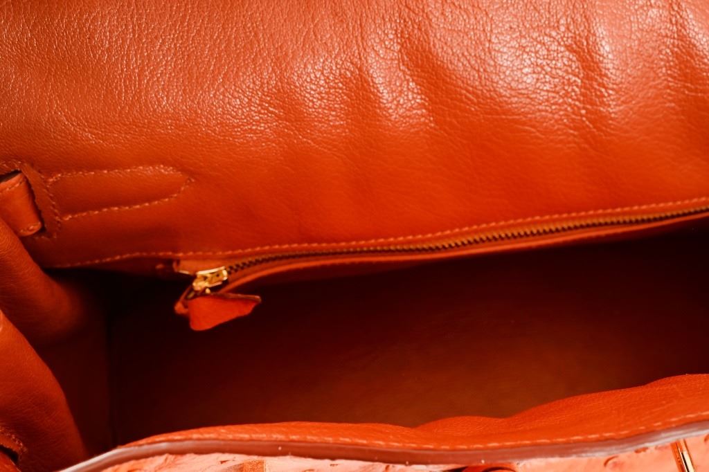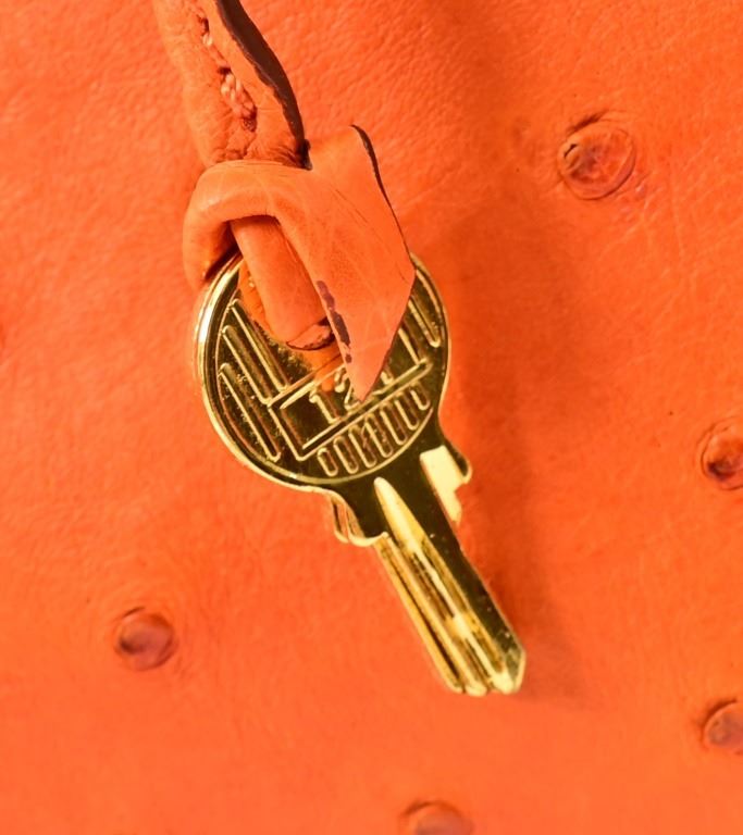 Orange. With cloth drawstring bag. Approx. 14" x 11".