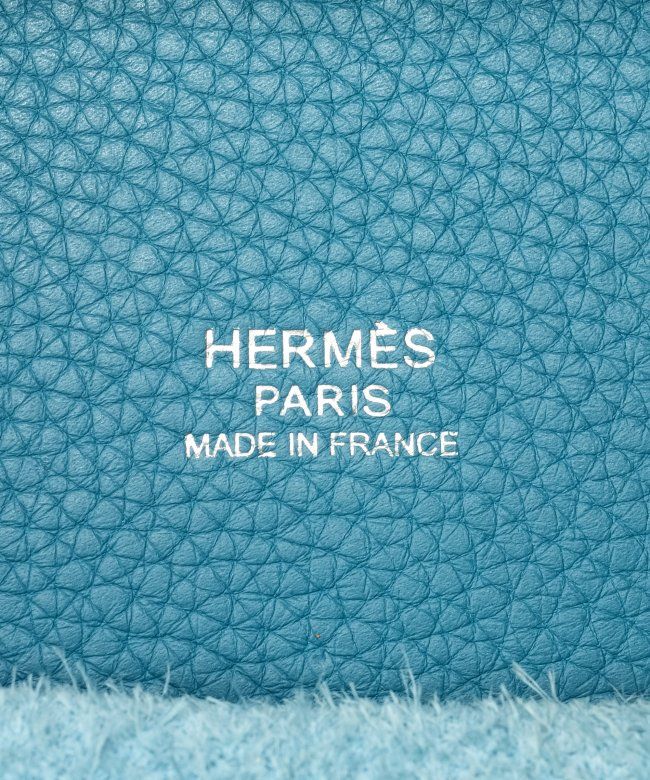 Hermes Picotin PM (Stamp: Square K). Blue jean leather body, Lightly worn feet, Lightly worn interior. Style: Taurillon Clemence. Size:21.5W x 23H x 17D. Includes: Dust Bag. WF5085