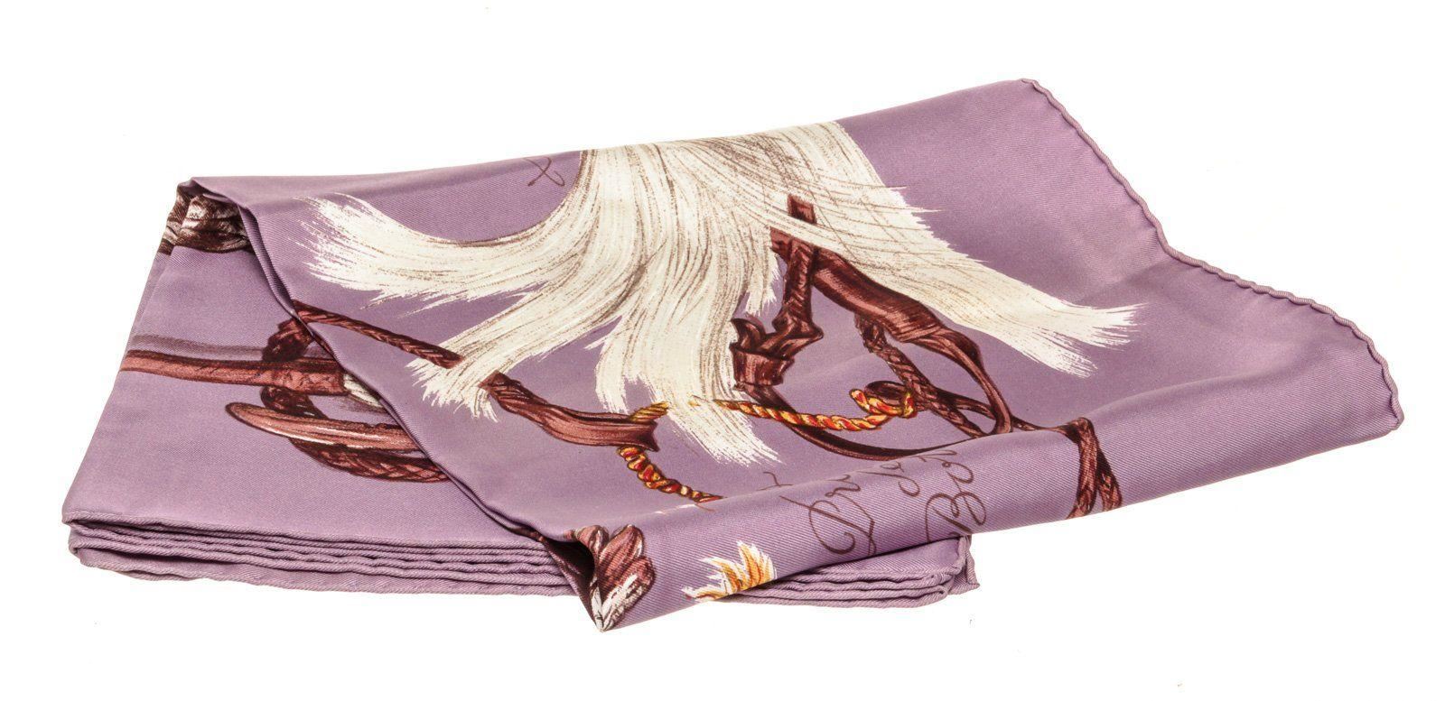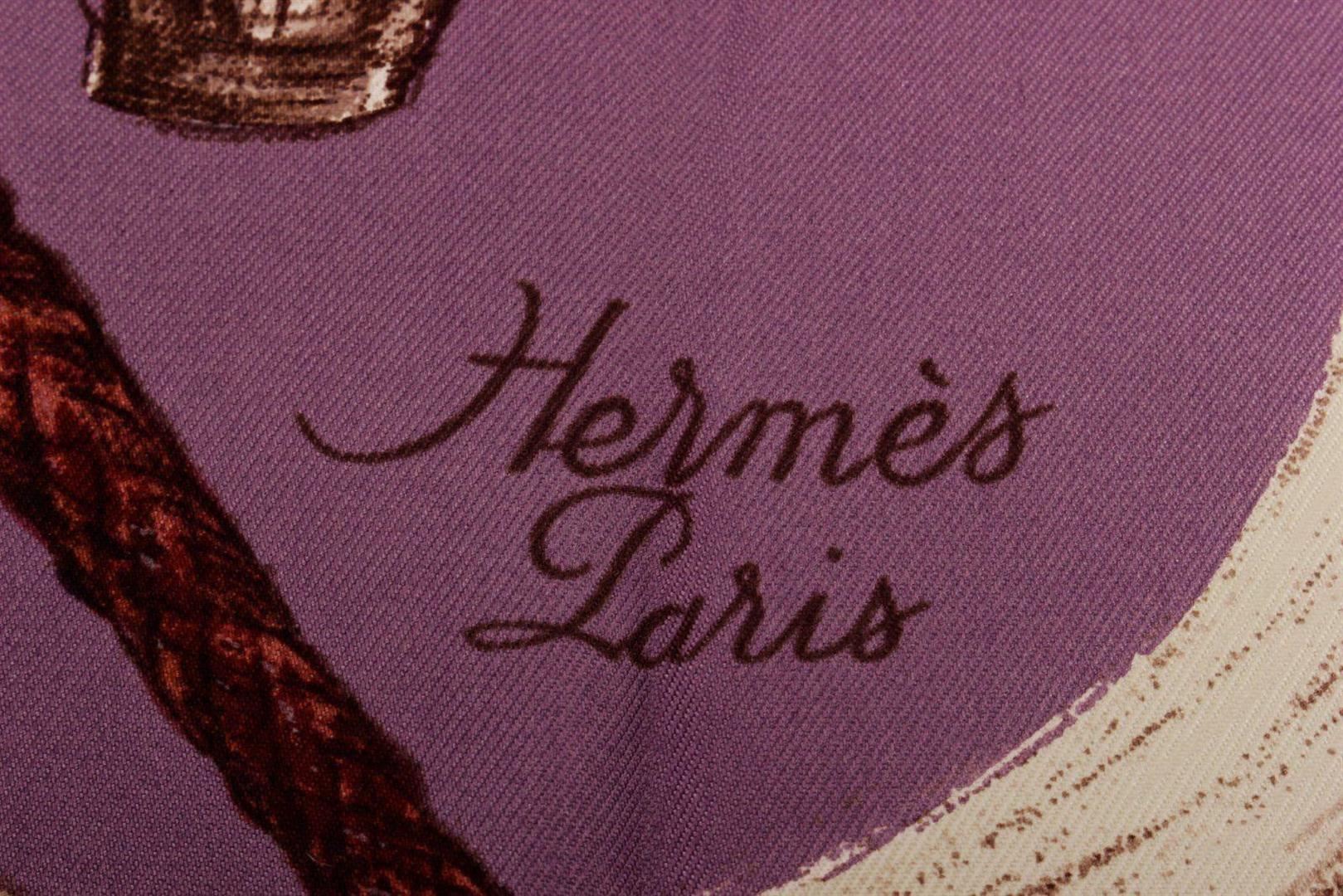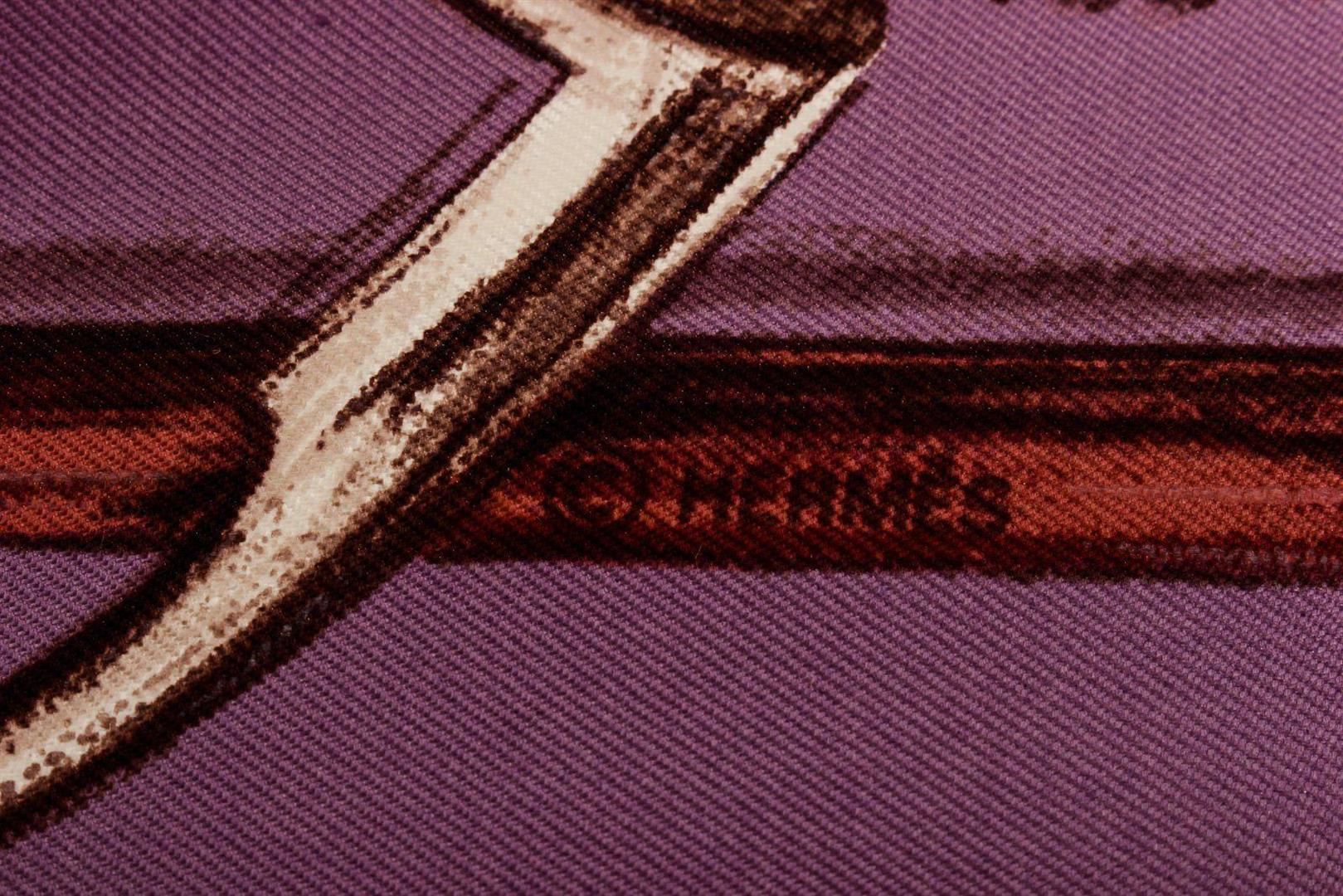 Hermes Purple Silk Scarf with silk gold tone hardware, silk pattern Sesame scarf designed by Philippe Ledoux, hand rolled edges. Please note, 0.5cm stain on edge of item.