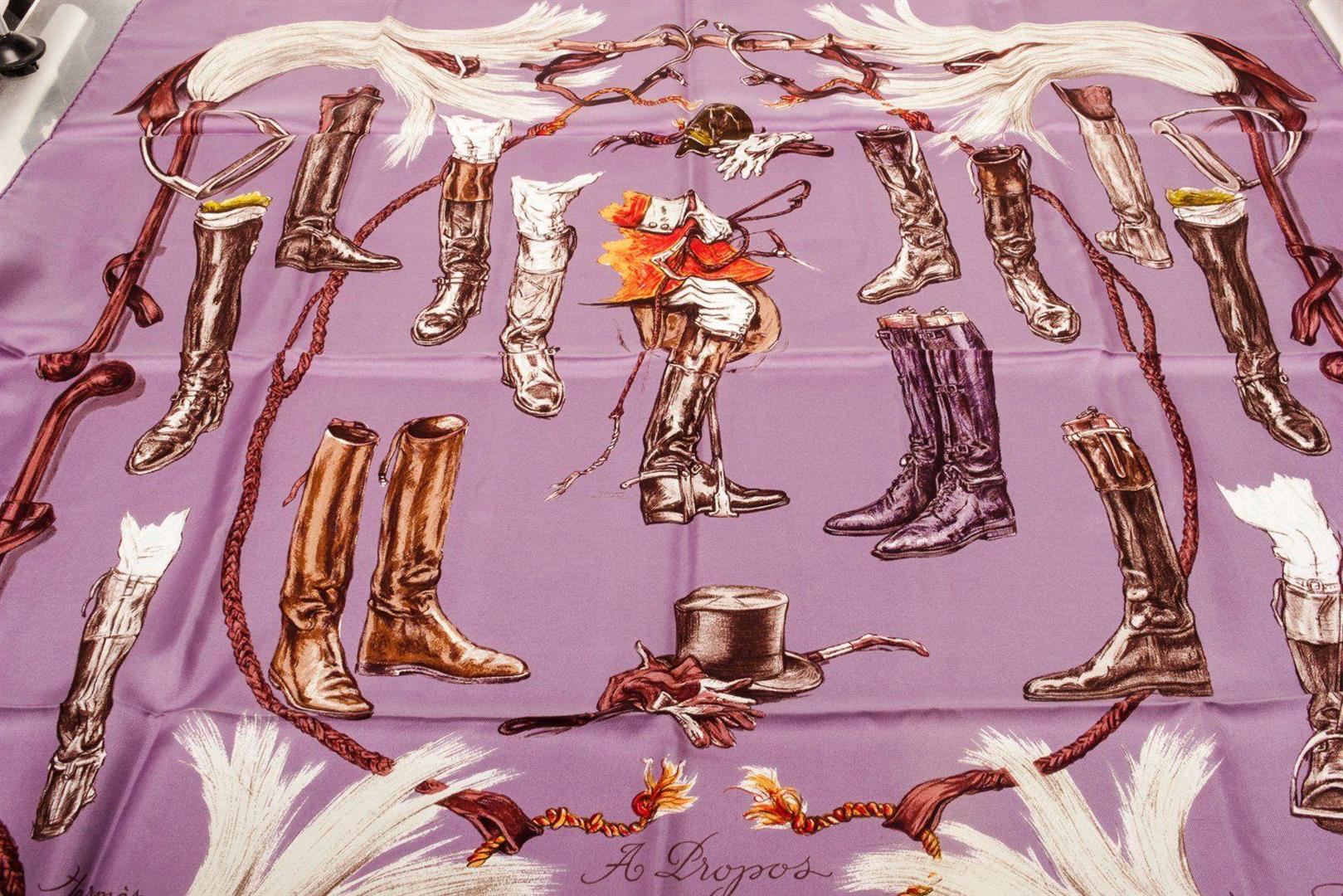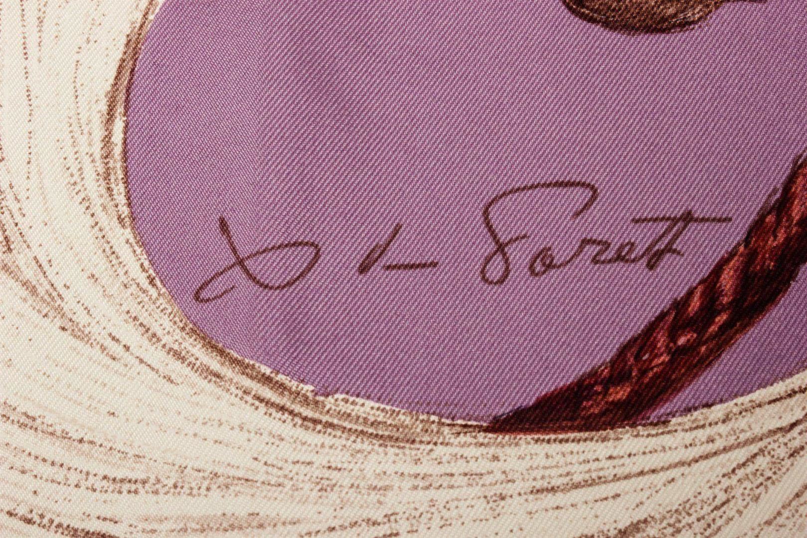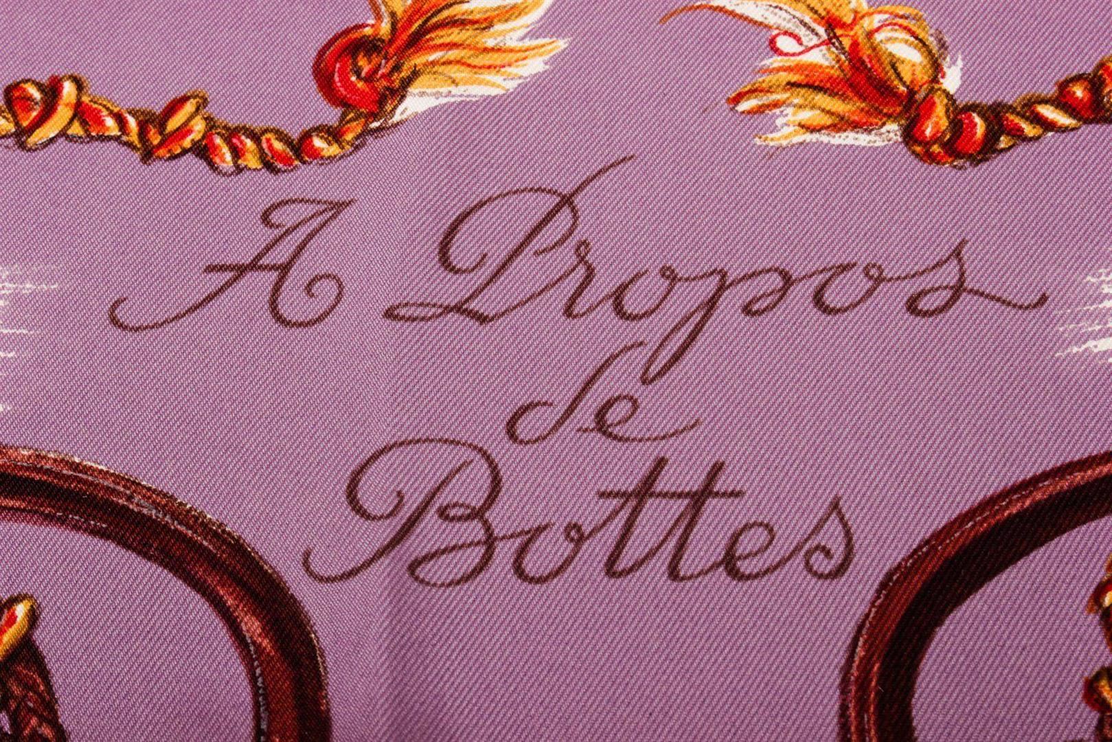Hermes Purple Silk Scarf with silk gold tone hardware, silk pattern Sesame scarf designed by Philippe Ledoux, hand rolled edges. Please note, 0.5cm stain on edge of item.