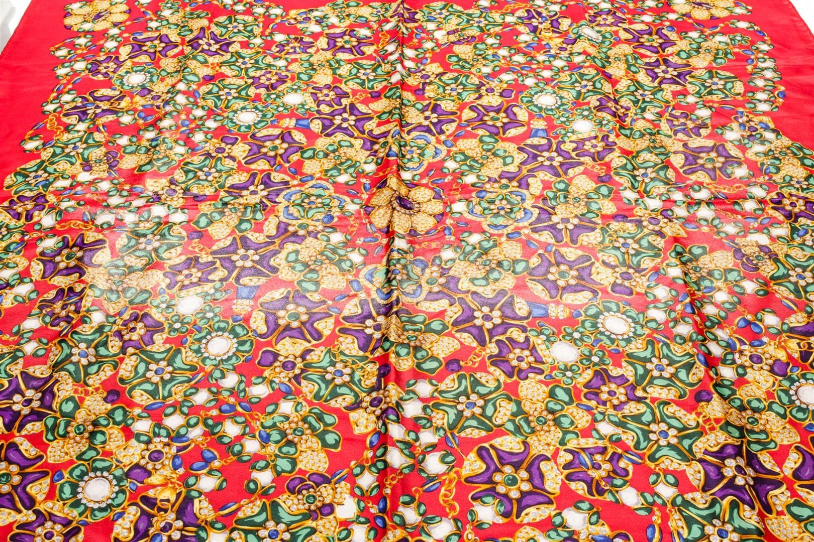 One Hermes Red Gold Silk Scarf. Item is sold AS-IS. All available information is listed in the description and shown in the photo. Green Gold Silk