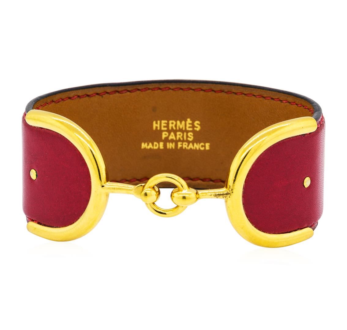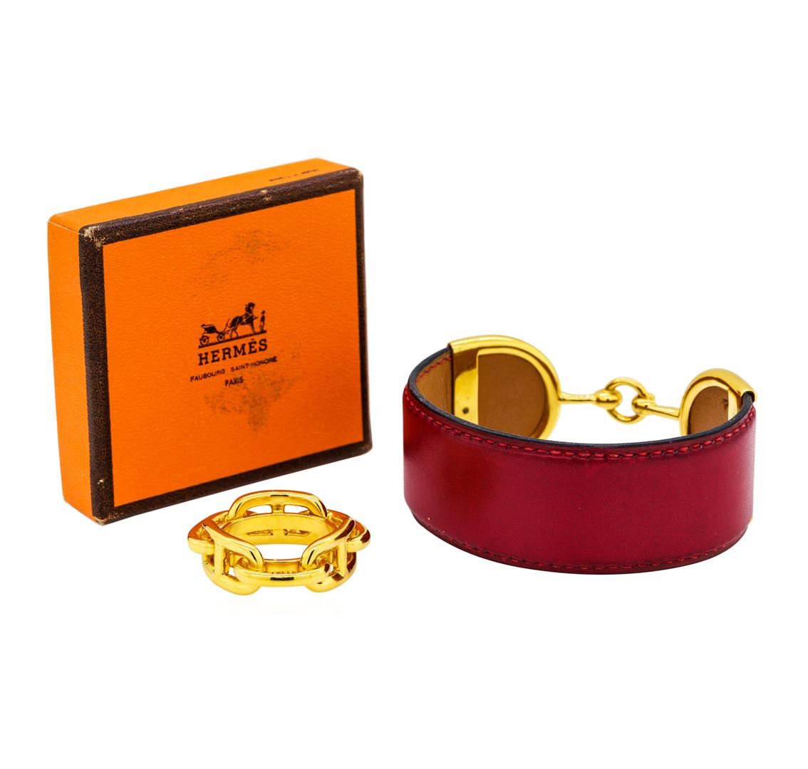 One Hermes red leather bangle and gold-plated ring.