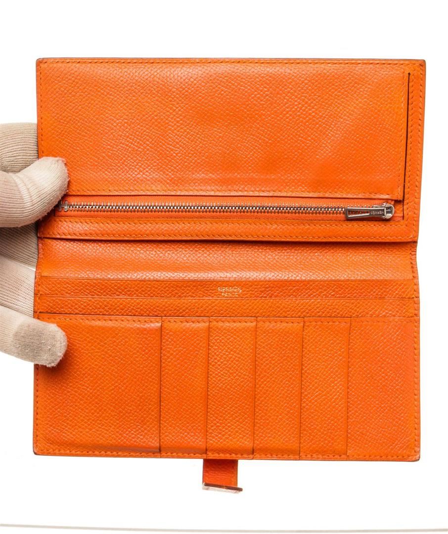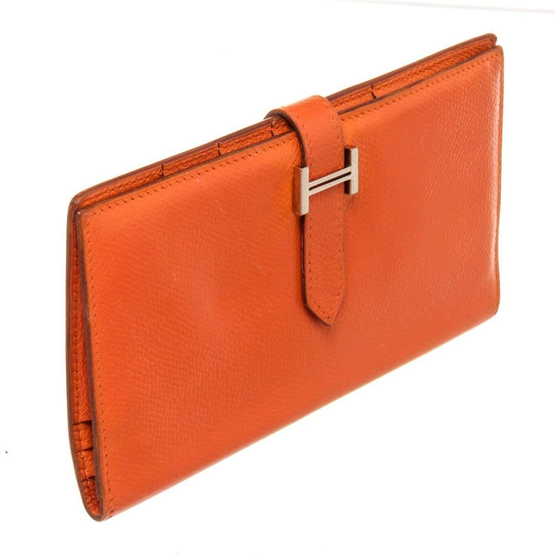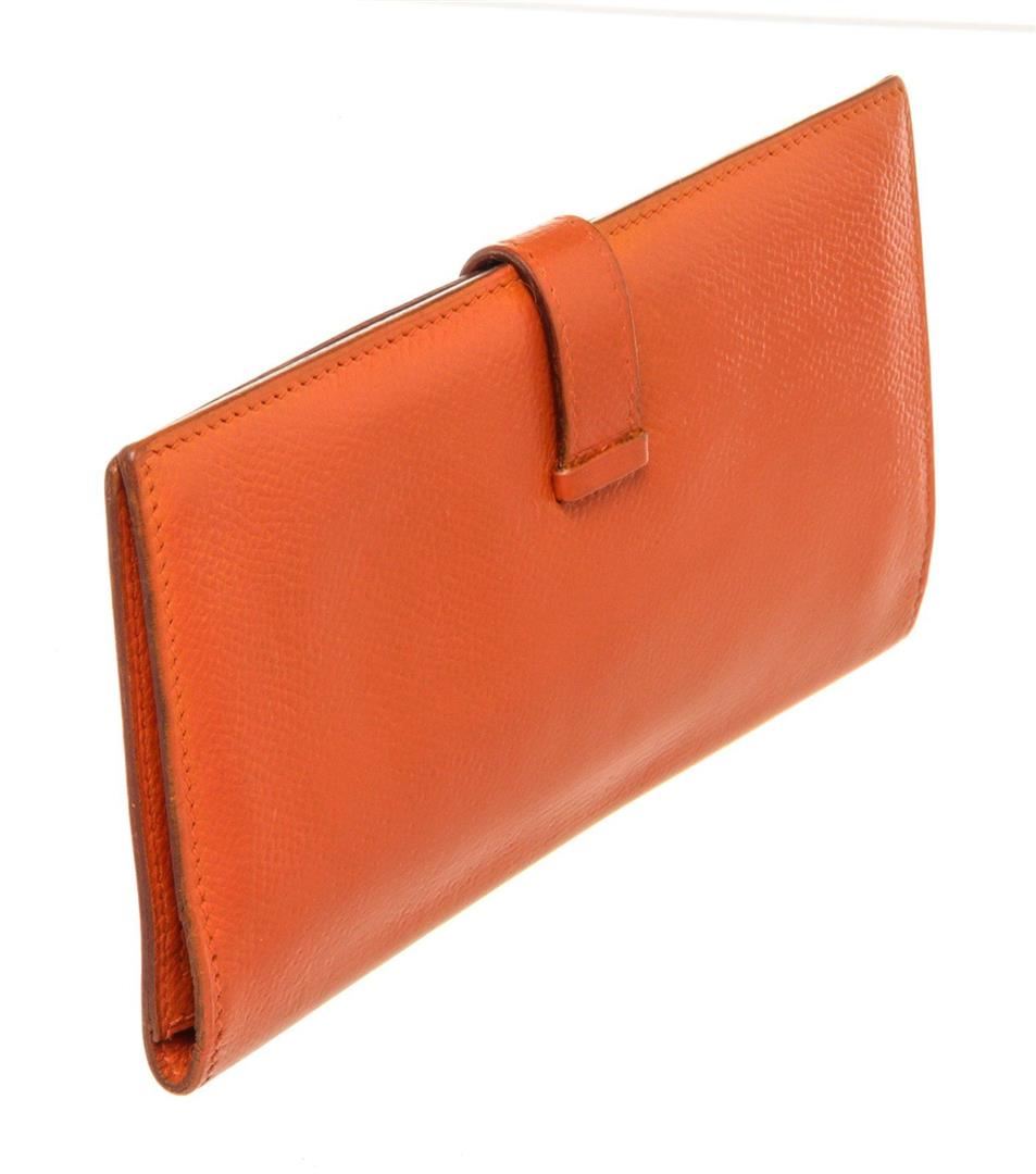 Hermes Red Leather Bearn Wallet with leather, gold-tone hardware, trim leather, interior three compartments pocket and snap closure.
