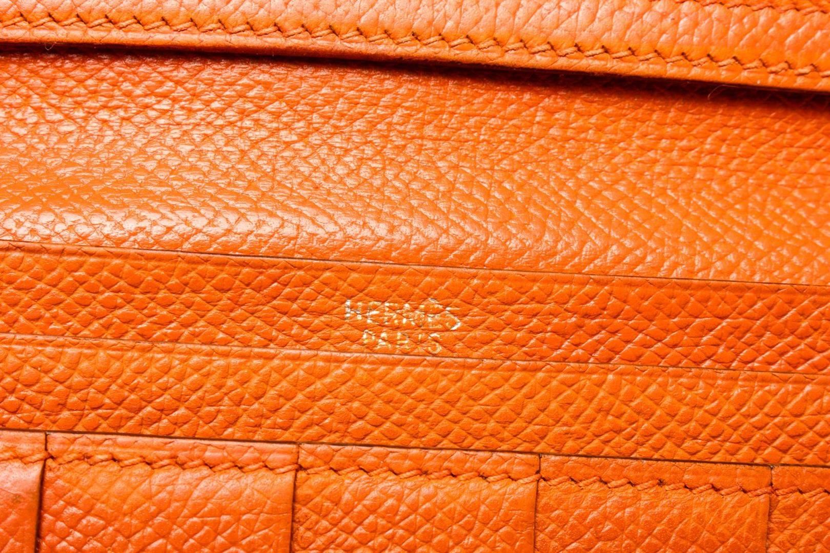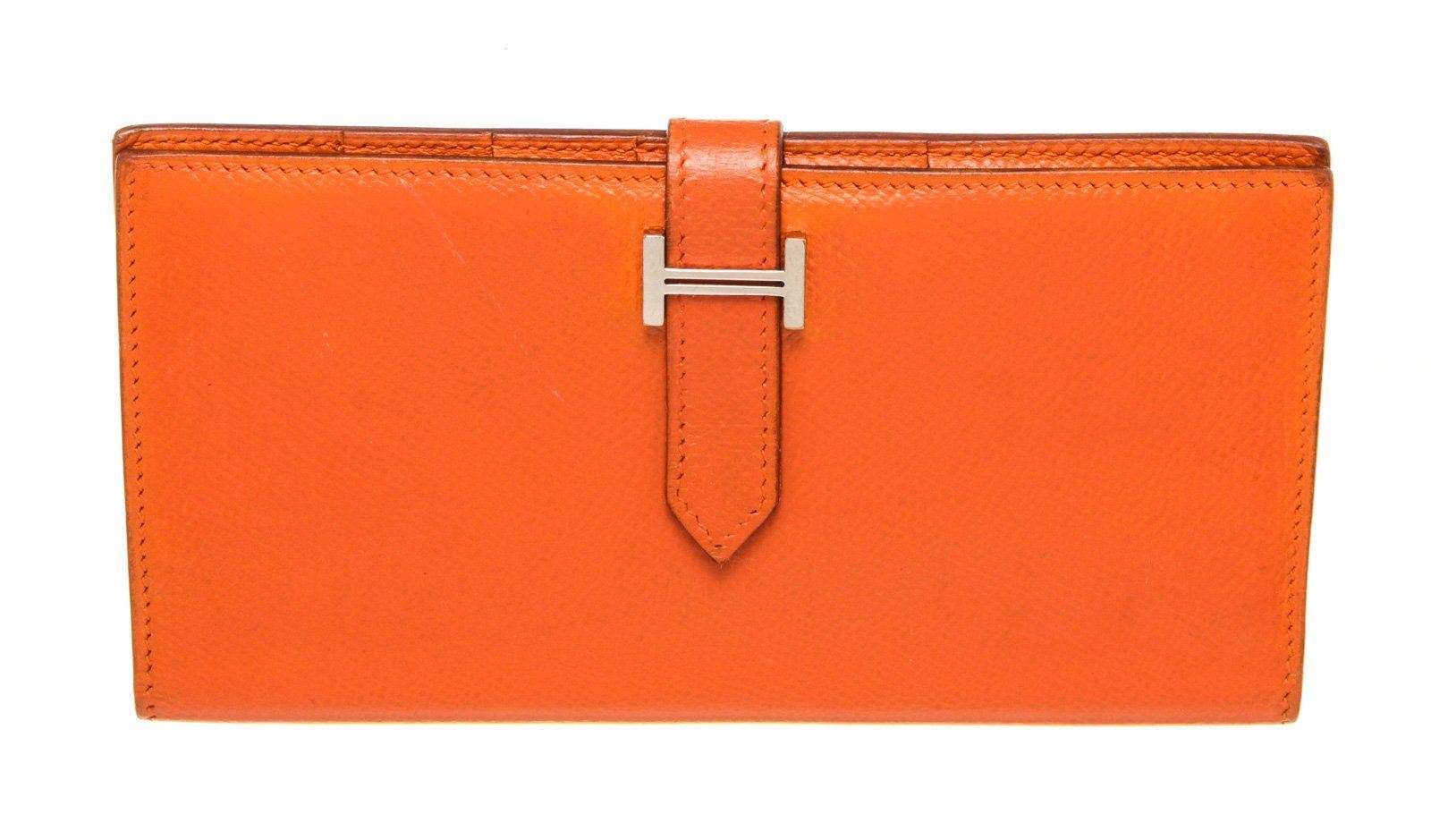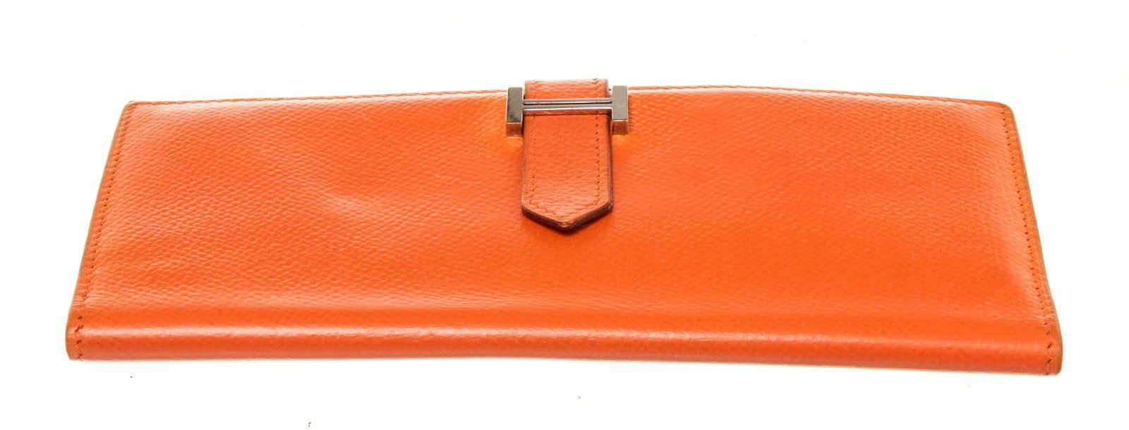 Hermes Red Leather Bearn Wallet with leather, gold-tone hardware, trim leather, interior three compartments pocket and snap closure.