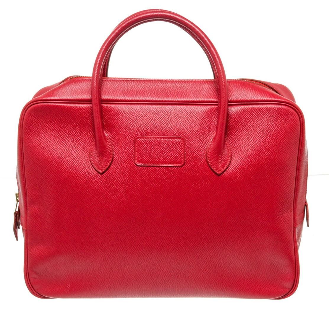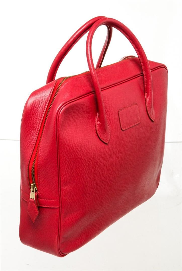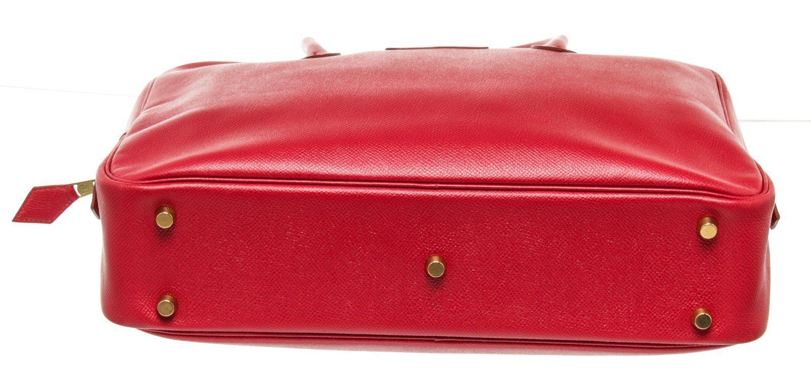 Hermes Red Leather Eiffel Briefcase Bag with leather, gold-tone hardware, trim leather, interior slip pocket, dual top handle and zipper closure.
