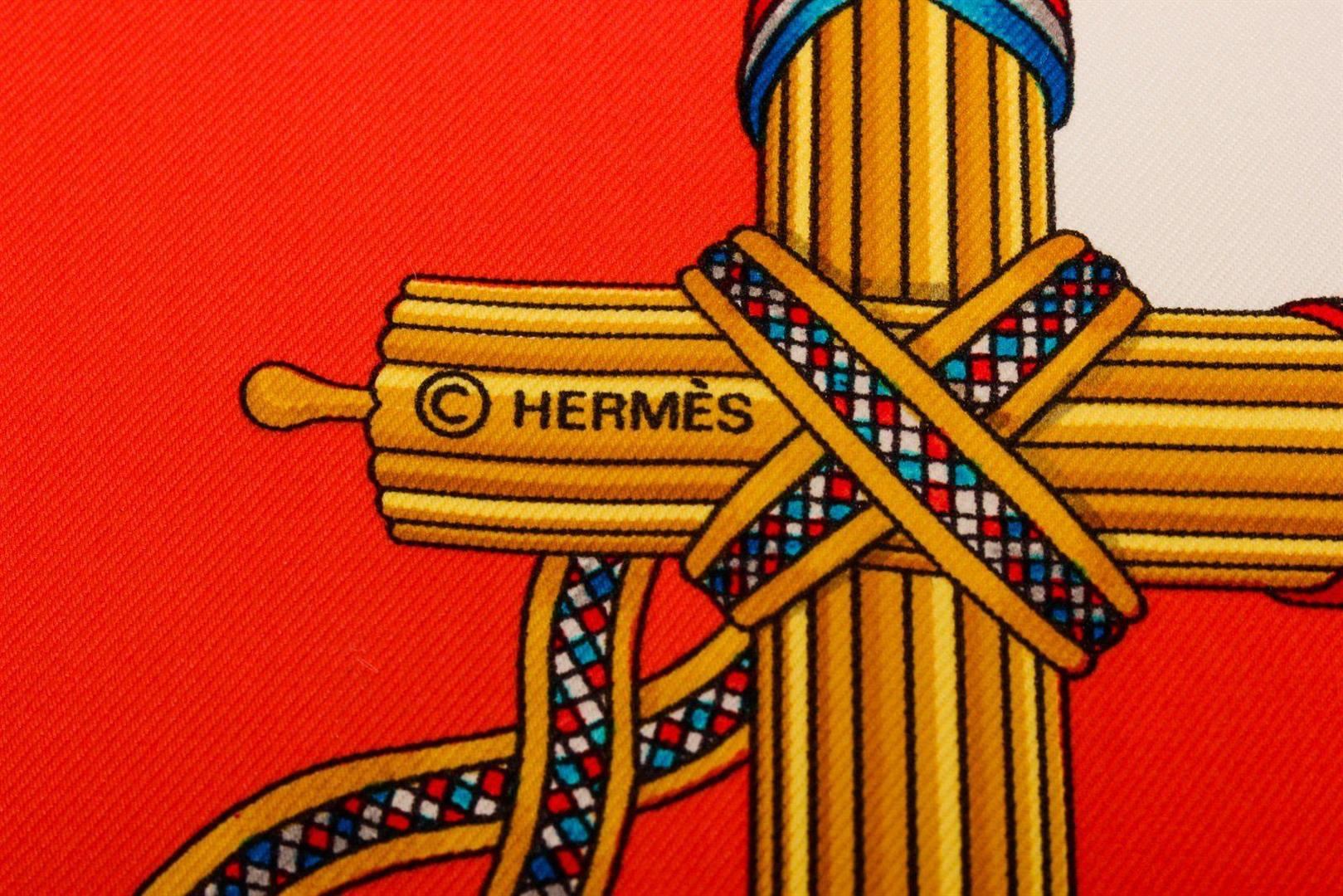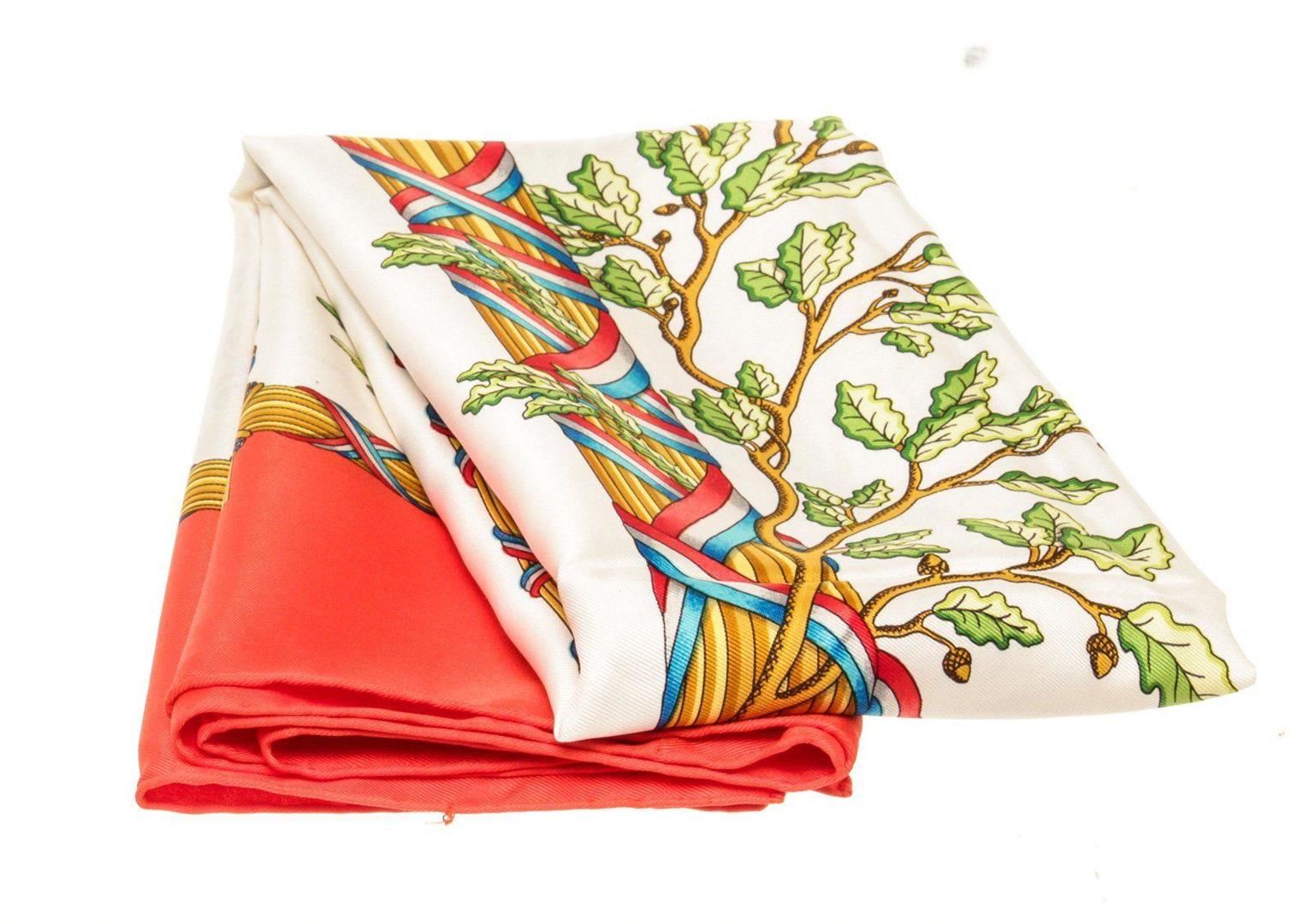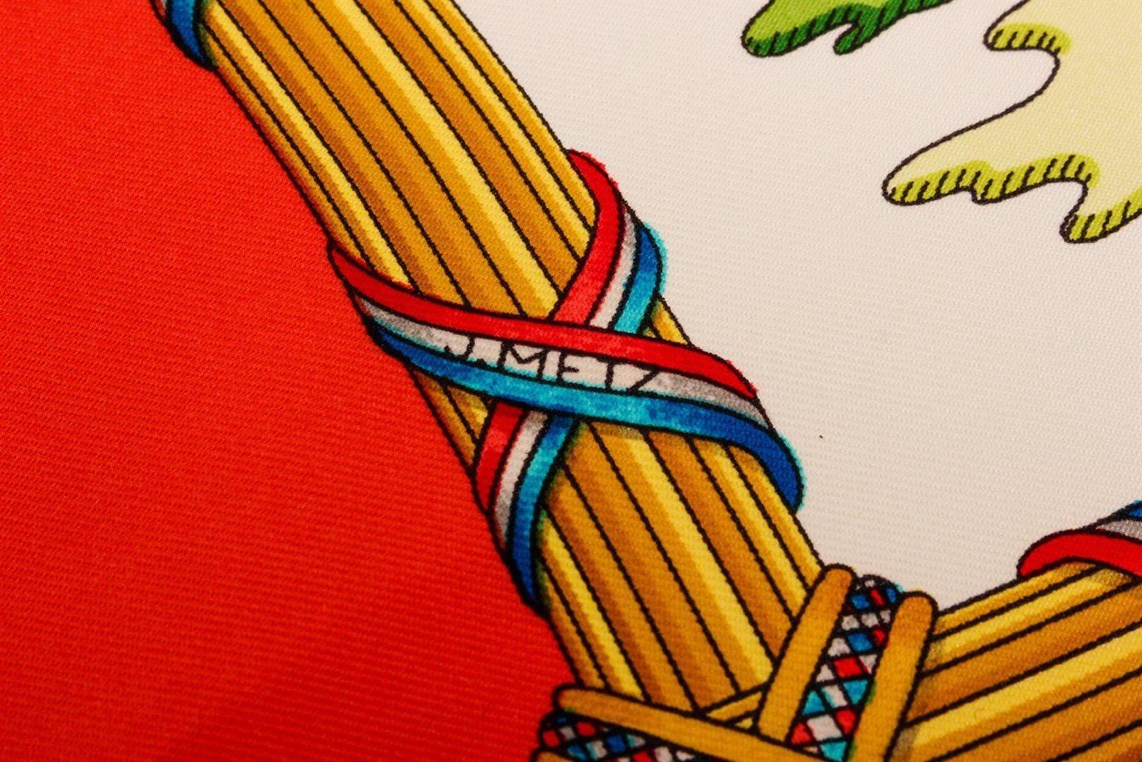 Hermes Red Multicolor Silk Scarf with silver-tone hardware.