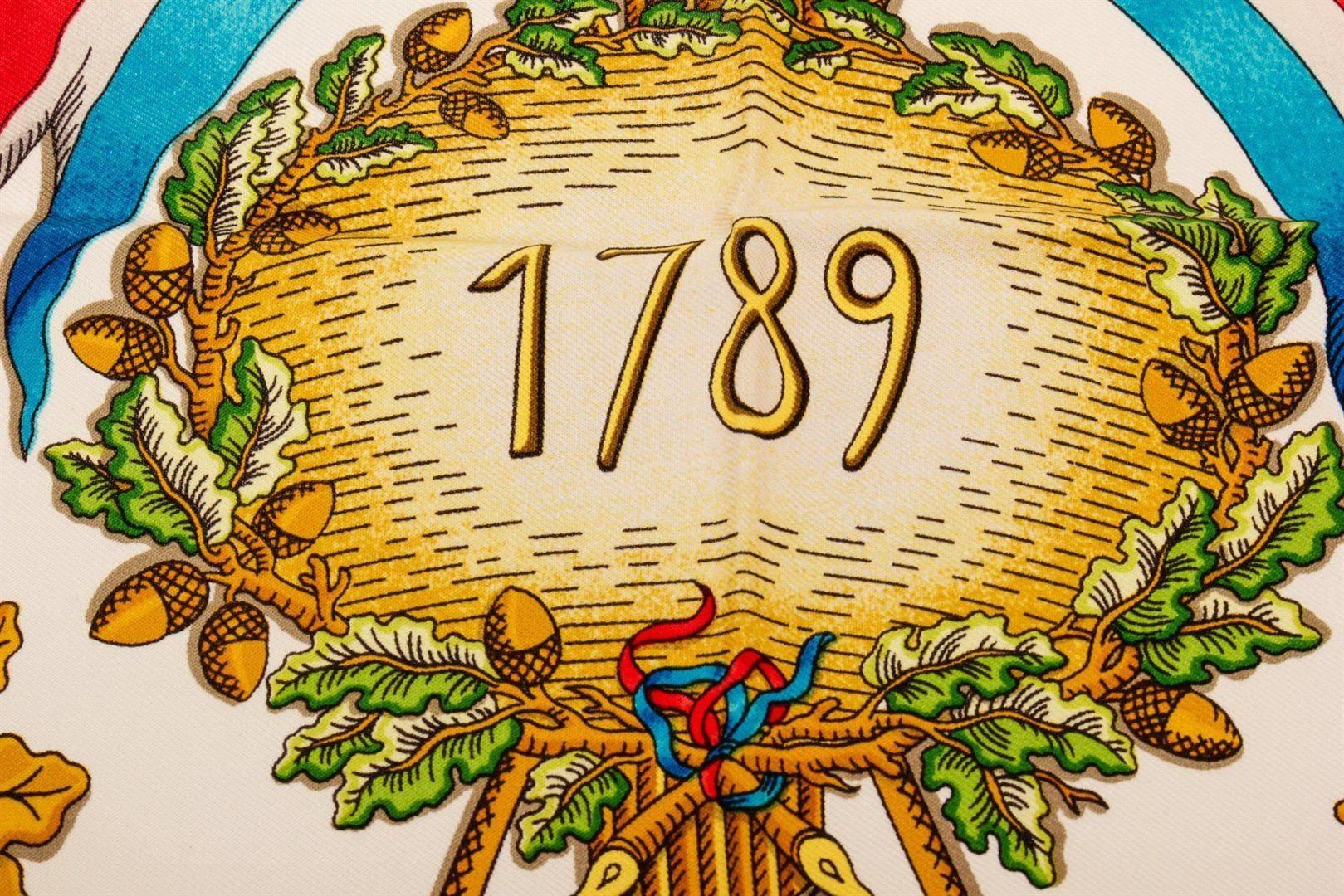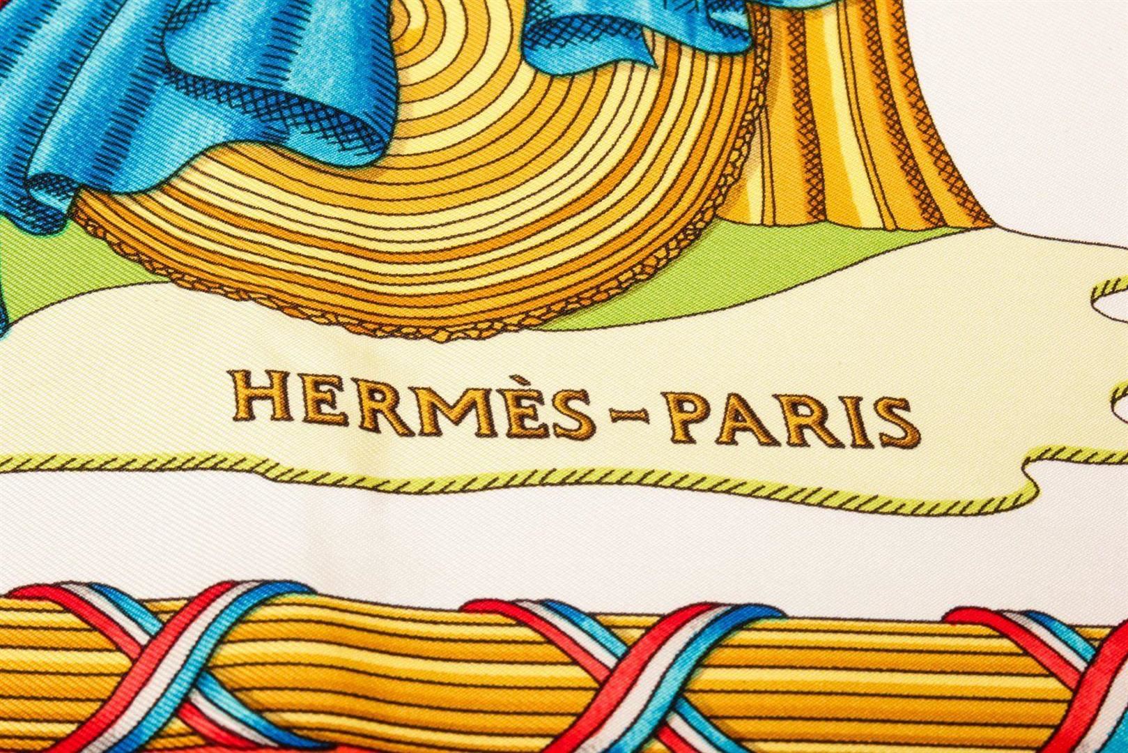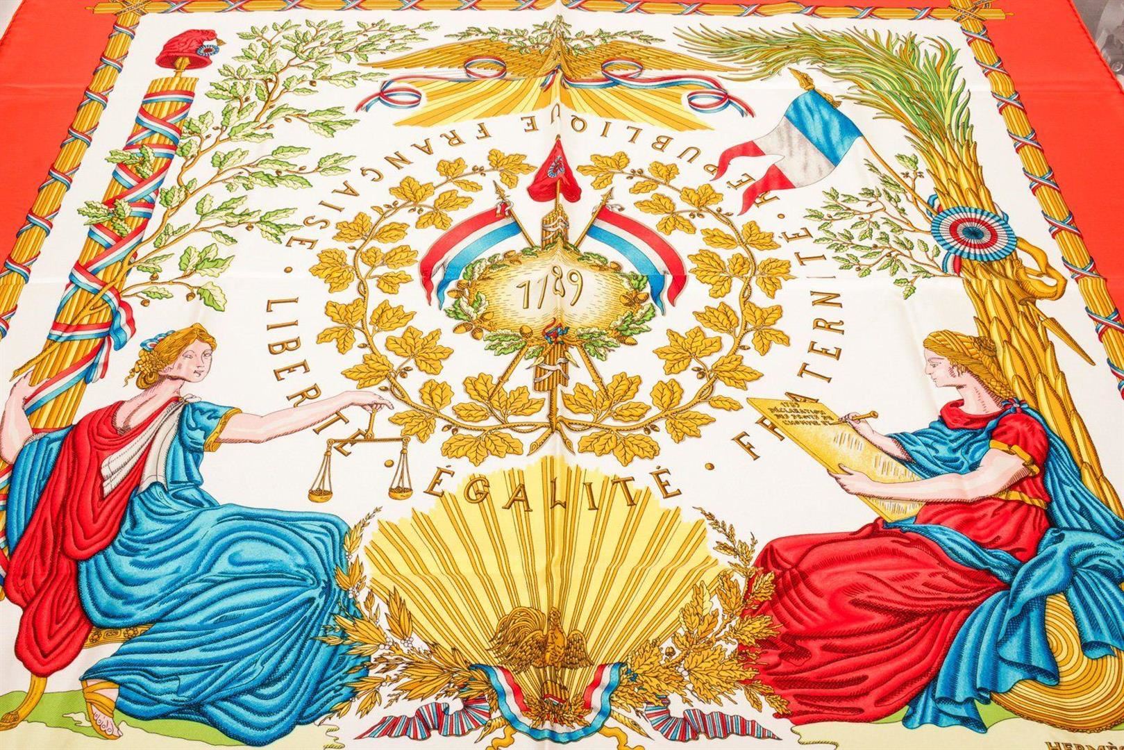Hermes Red Multicolor Silk Scarf with silver-tone hardware.
