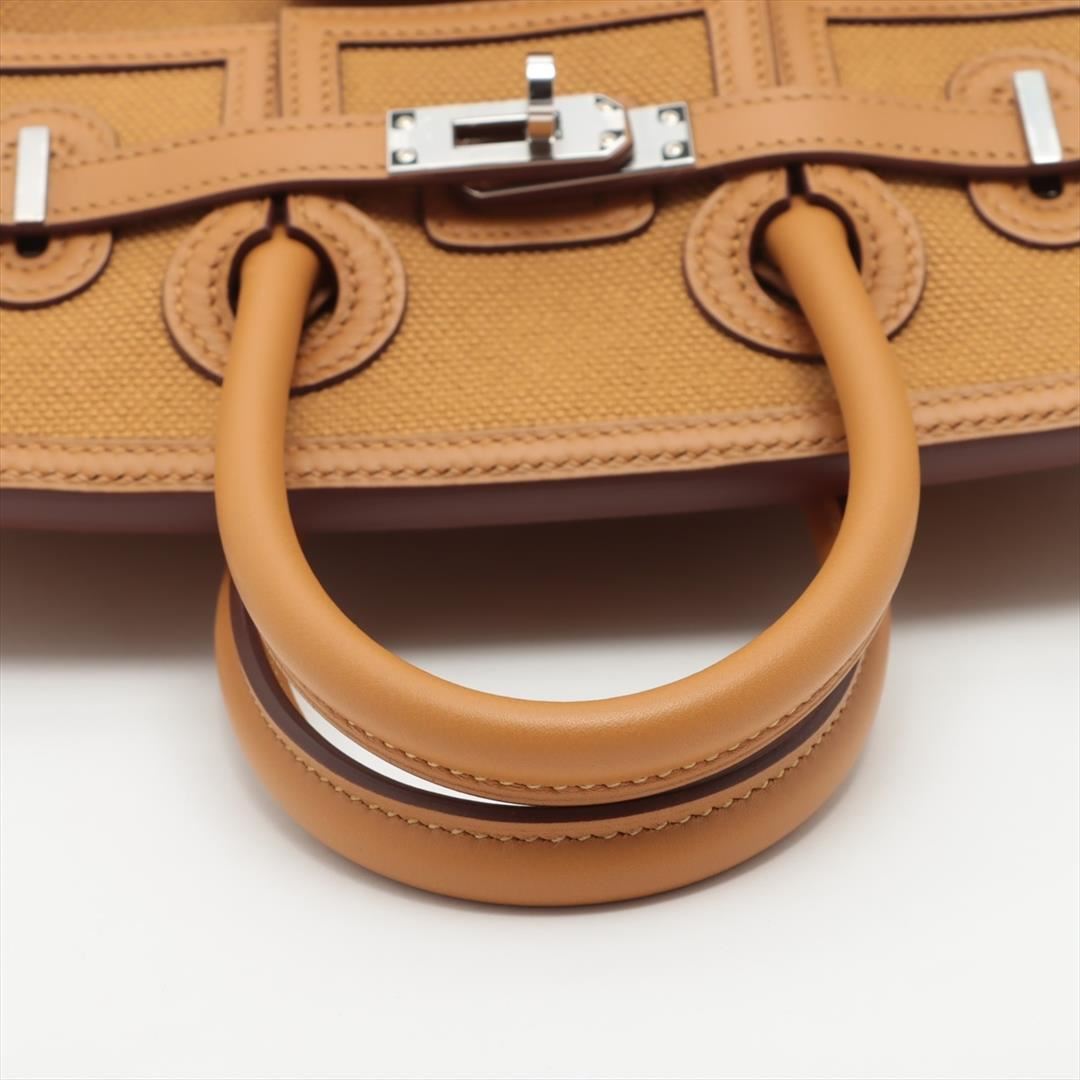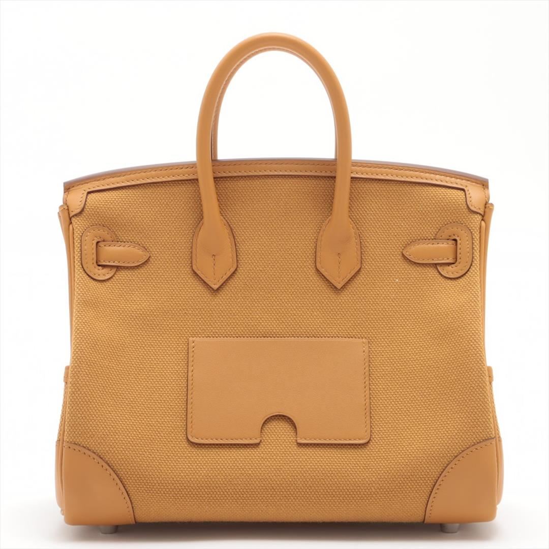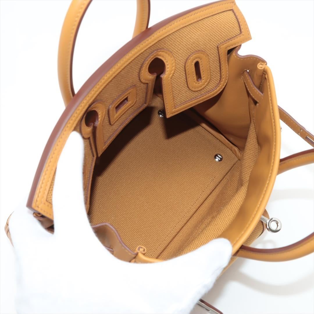 One Hermes Sesame Toile Ash Swift Leather Birkin 25cm Cargo Handbag PHW. Item is sold AS-IS. Please check photos and descriptions for all available details. Sesame Toile with Ash Swift leather Hermes Birkin 25cm Cargo handbag with Palladium hardware, Ash Swift leather trim, dual rolled handles, one exterior flap pocket, tonal canvas lining, turn-lock closure at front and protective feet at base. Height: 8.5" Width: 9" Depth: 5" Handle Drop: 2.5"
