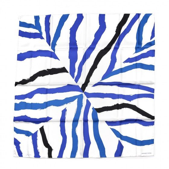 Bleu White / Black scarf features an elaborate rendering of a stylized depiction in blue and white.