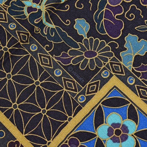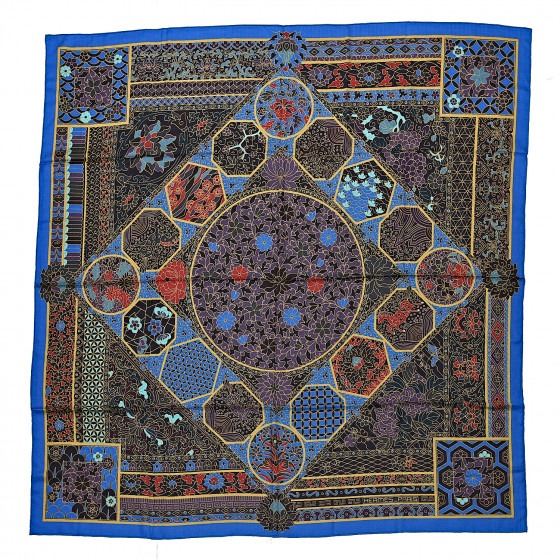Bleu Lie De Vin Mordore Hermes scarf is 70% cashmere and 30% silk and features a brilliant floral pattern.