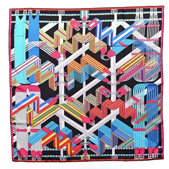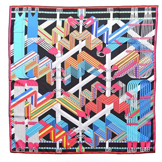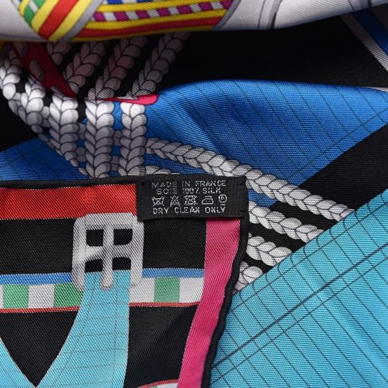 Blanc Turquoise Fuchsia Hermes shawl is crafted of 100% silk and features a brilliant display of a colorful design.