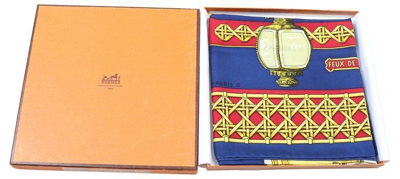 Vintage Hermès silk "Feux de Route" (Light the Way) scarf designed by Caty Lathan in 1971.