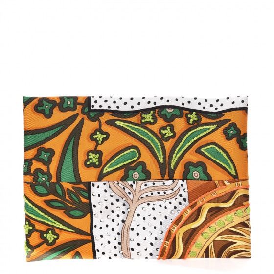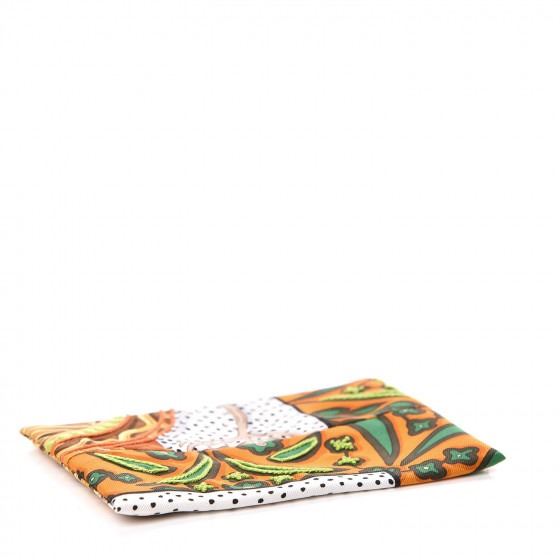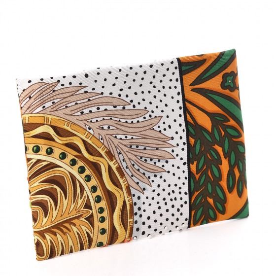 This chic tissue case is crafted of 100% silk and features a colorful print. The slit opens to a matching fabric interior.