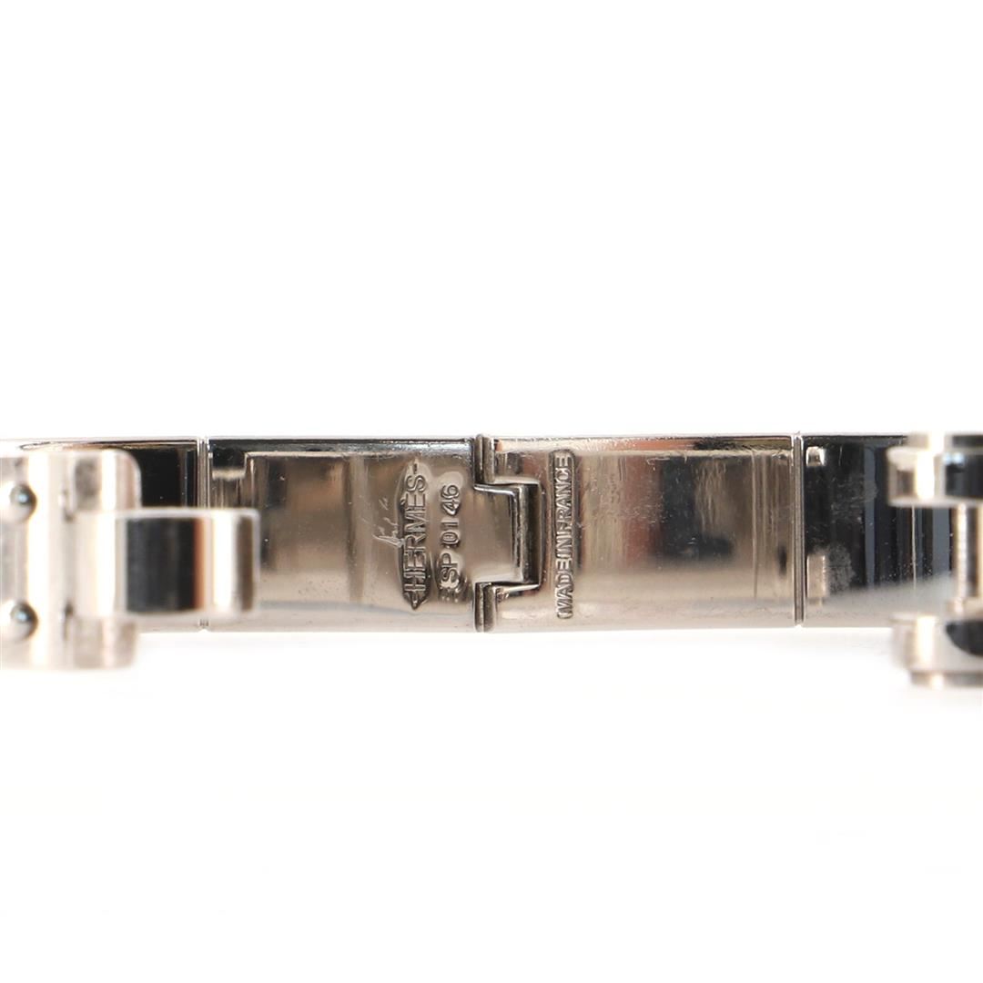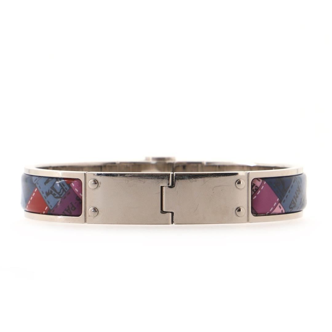 Palladium-plated Hermès hinged bracelet featuring printed enamel inlays and push clasp closure.