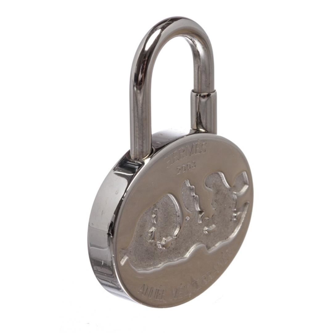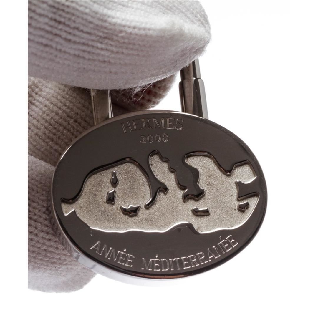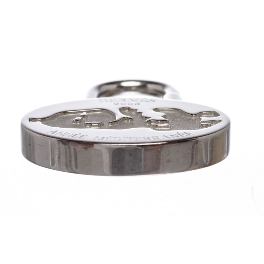 One Hermes Silver Palladium Année Méditerranée Lock Charm. Crafted out of silver palladium lock charm with screw closure.