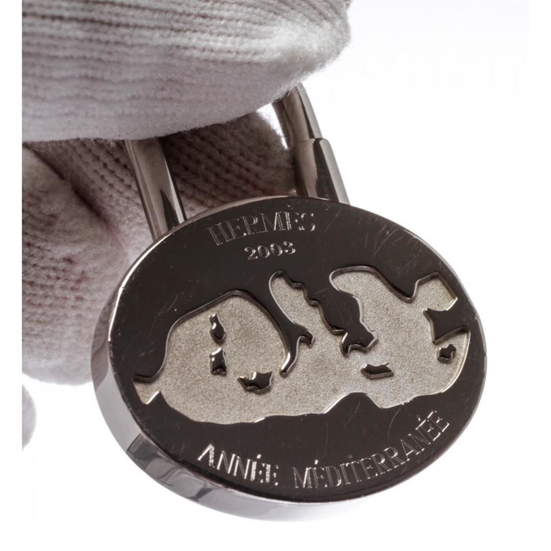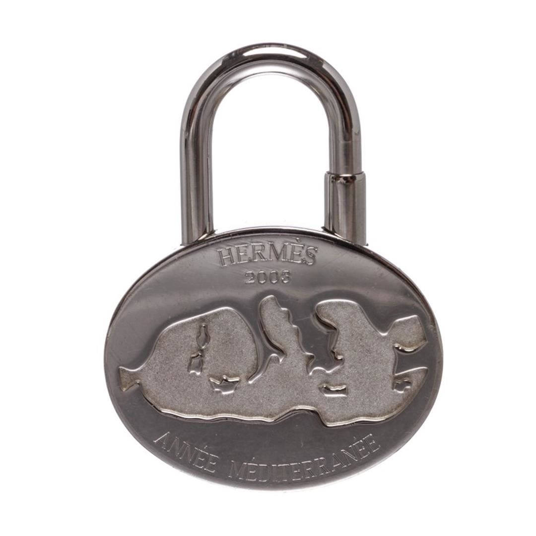 One Hermes Silver Palladium Année Méditerranée Lock Charm. Crafted out of silver palladium lock charm with screw closure.