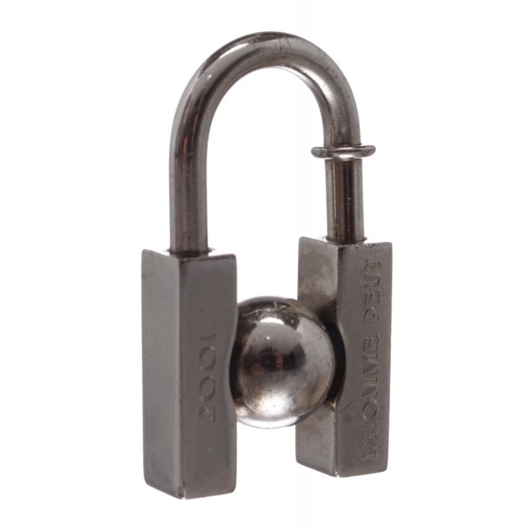 One Hermes Silver Palladium Embellir La Terre Cadena Lock Charm. Crafted out of silver palladium lock charm.