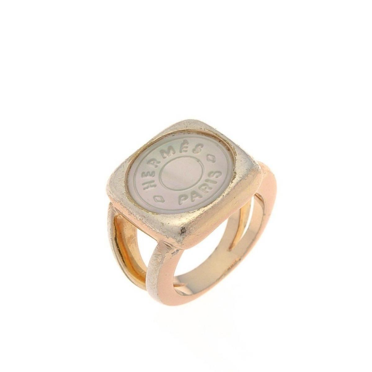 Hermes Tone Clou de Selle Ring with silver-tone hardware, High Polish. CONDITION: Pre-Owned Good overall, please see photographs for detail.