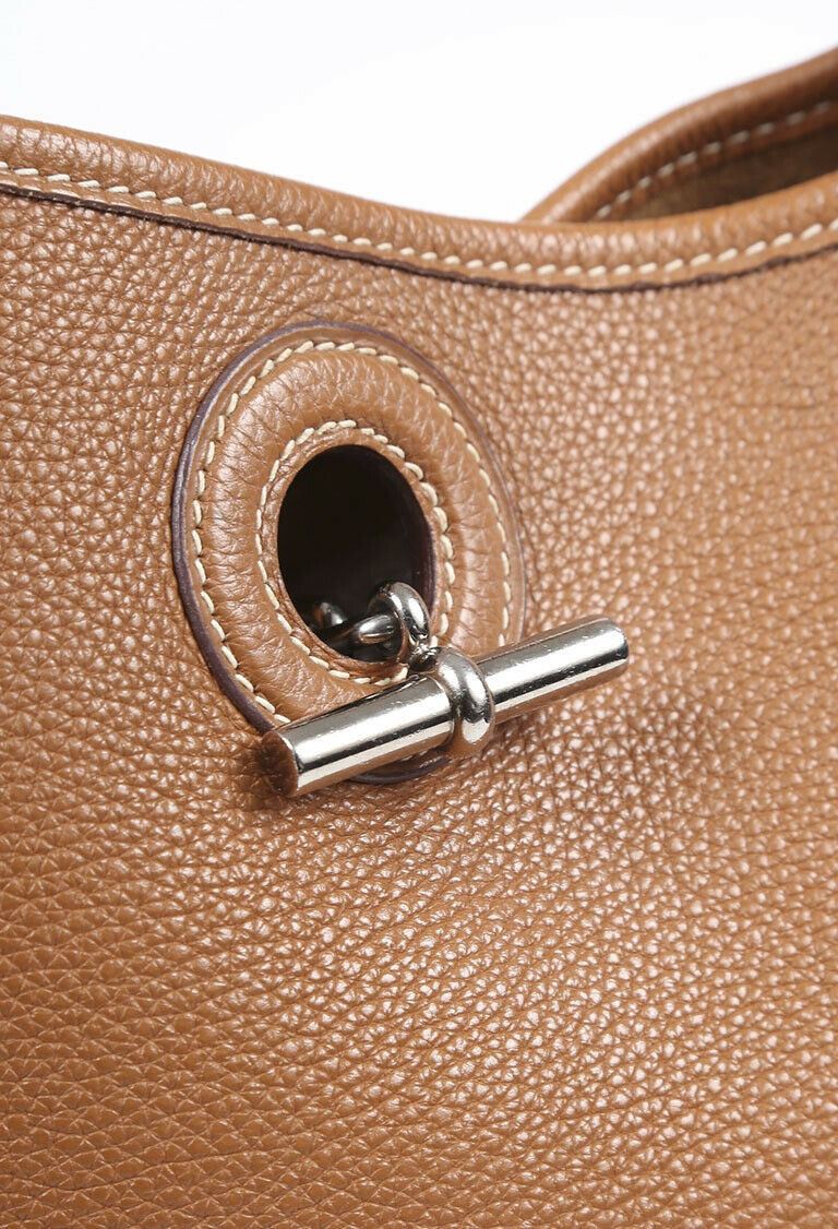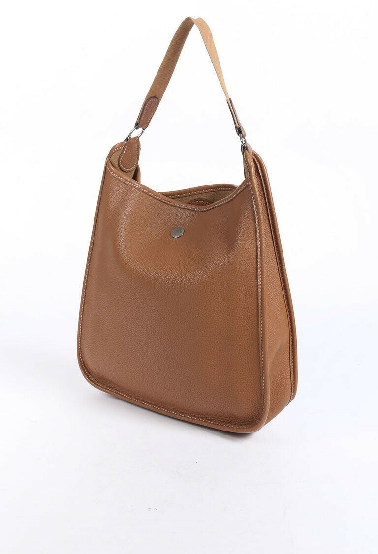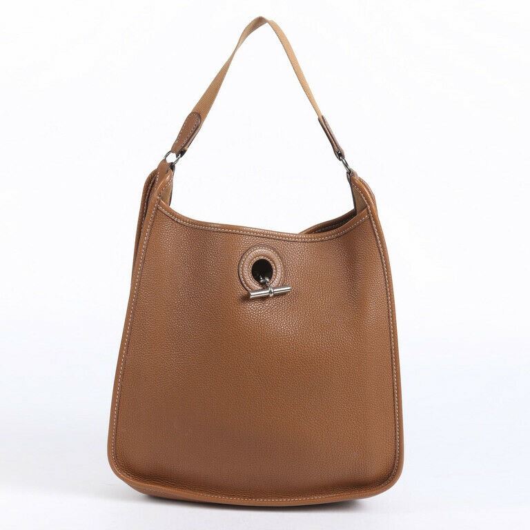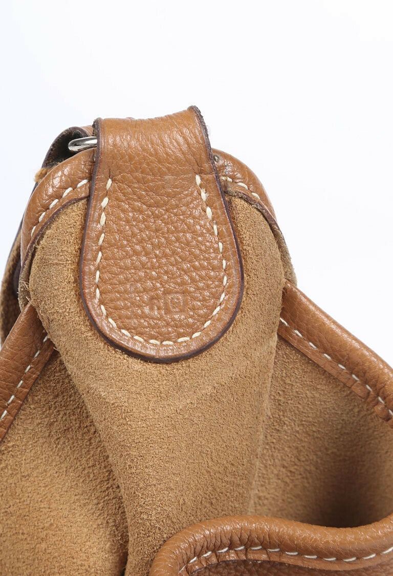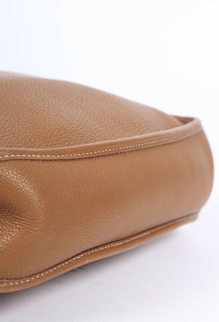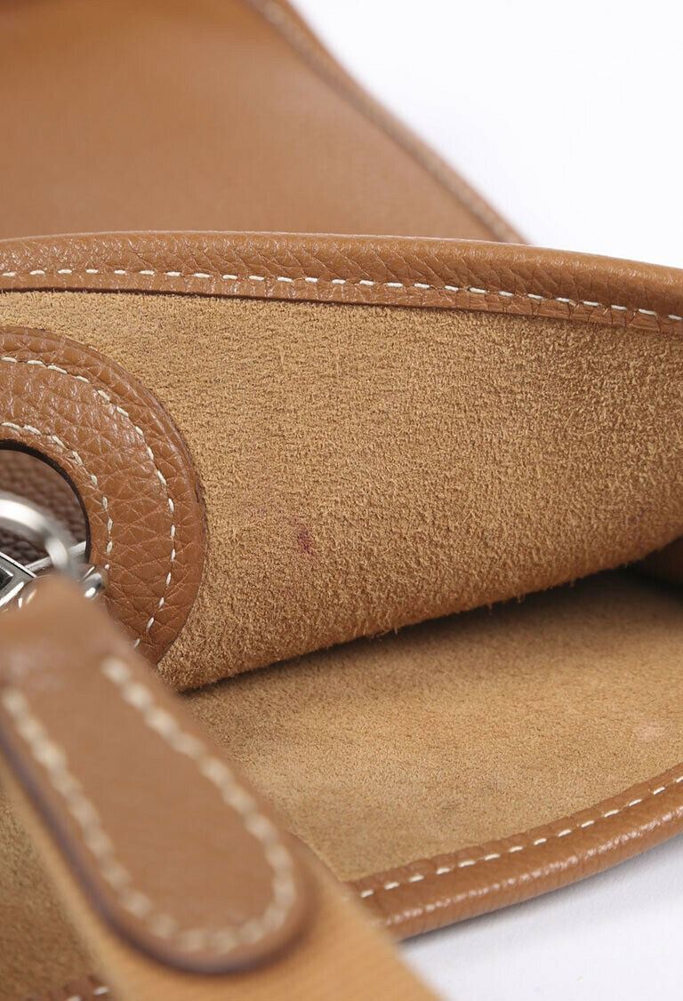 Circa 2003. Hermes Vespa PM shoulder bag is crafted from Gold Togo leather and features palladium plated hardware, a flat strap, toggle closure, and a suede interior.