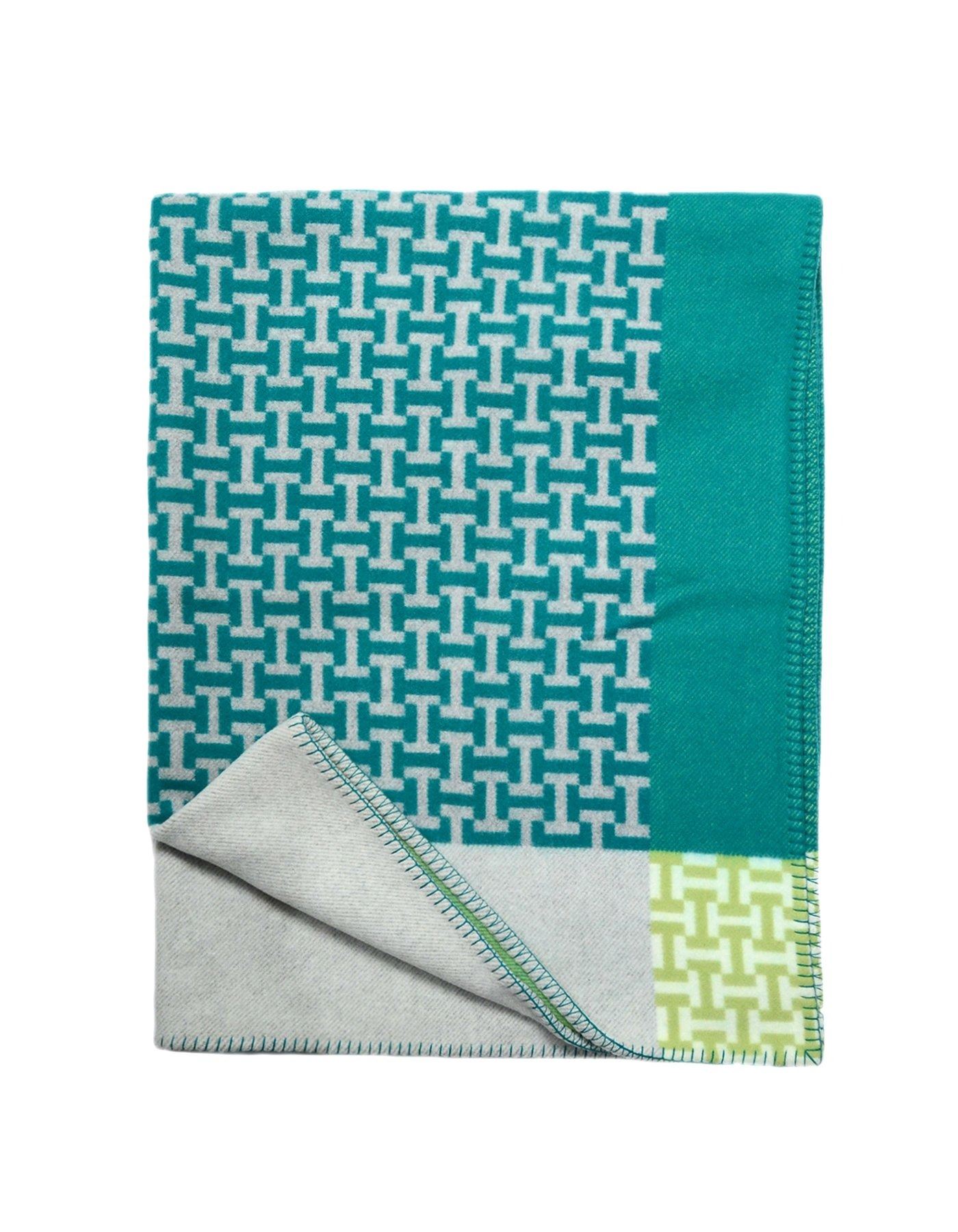 HERMES ALOE VERA GREEN AVALON TERRE D'H WOOL & CASHMERE THROW BLANKET