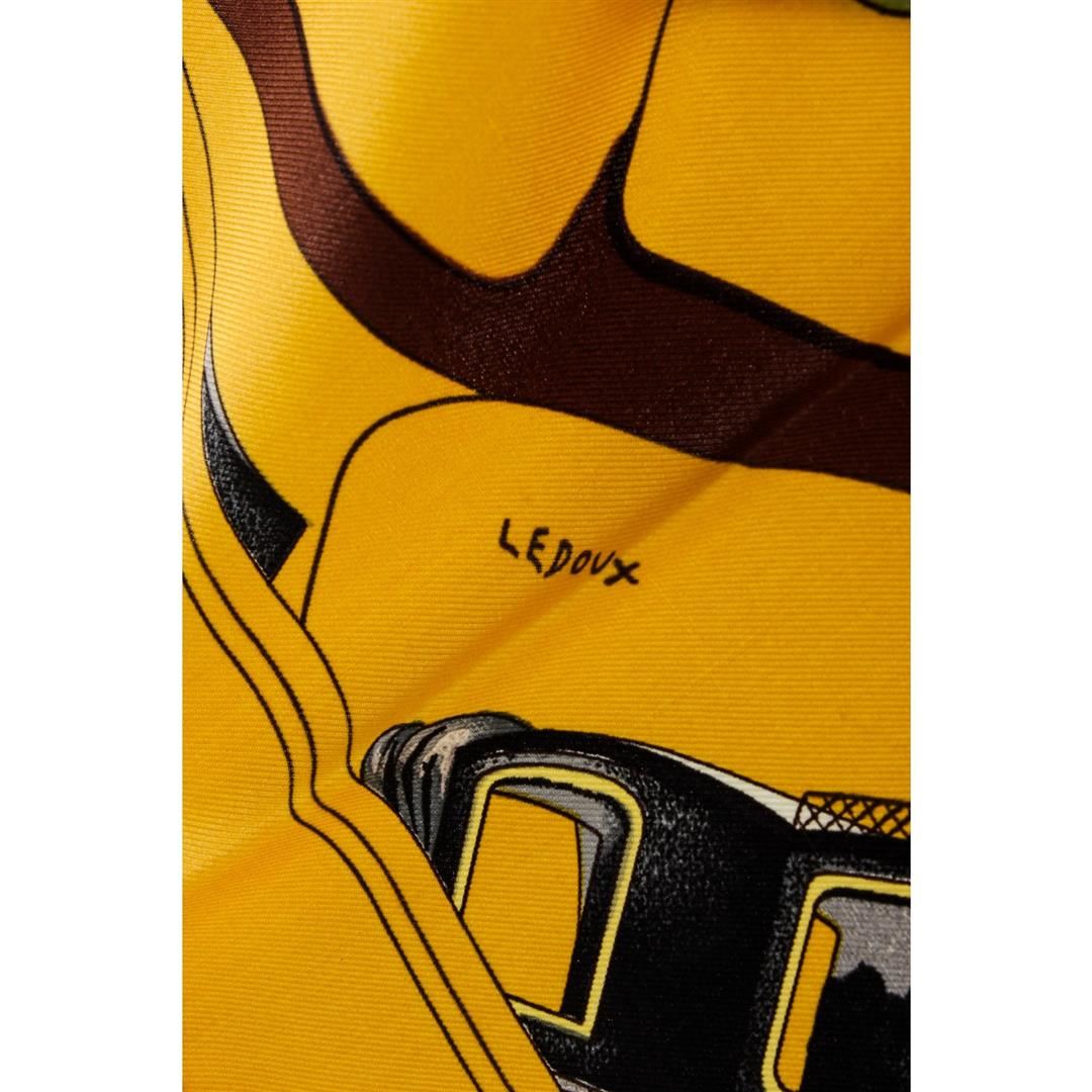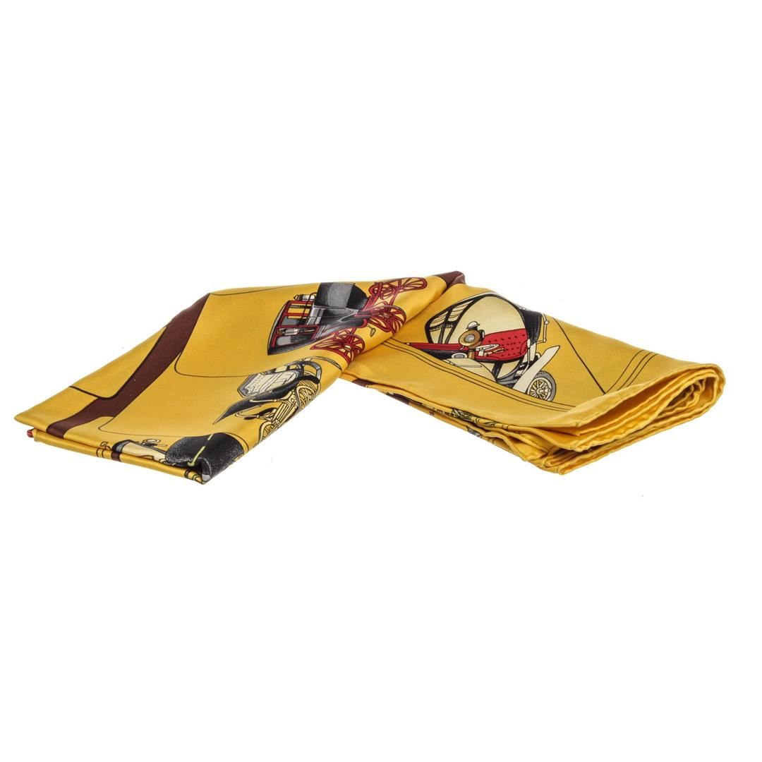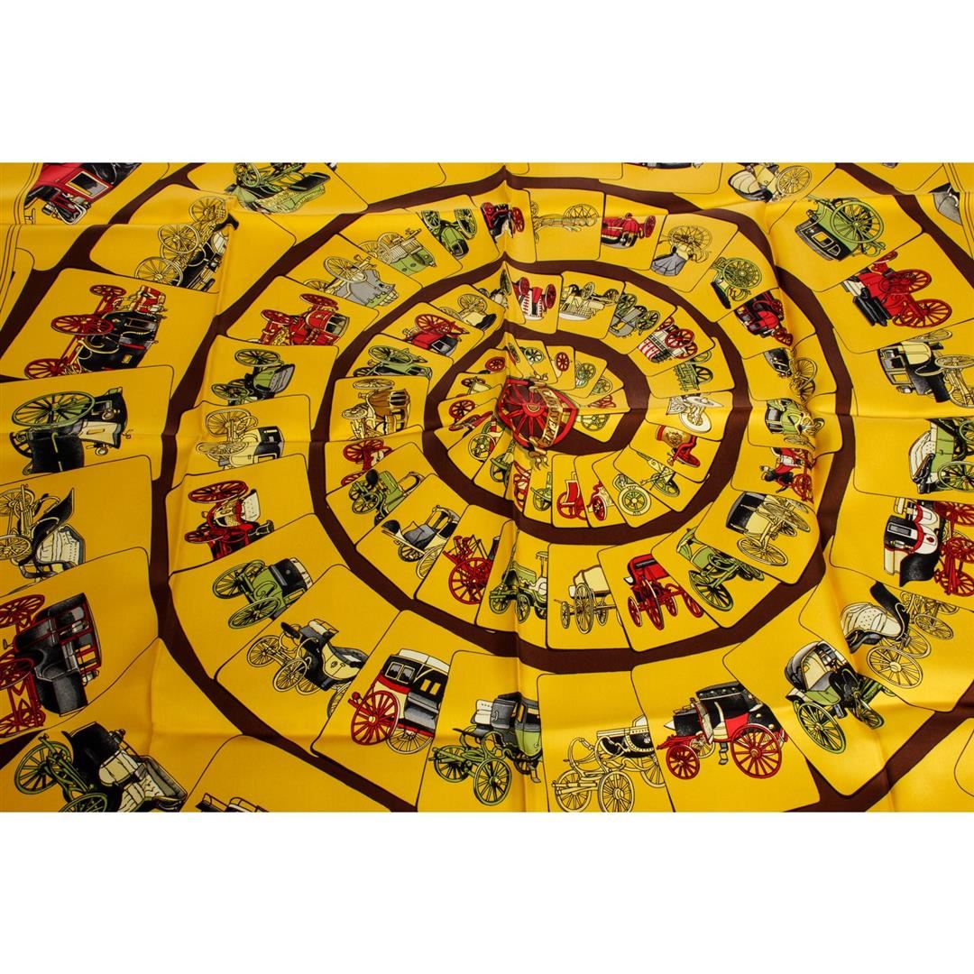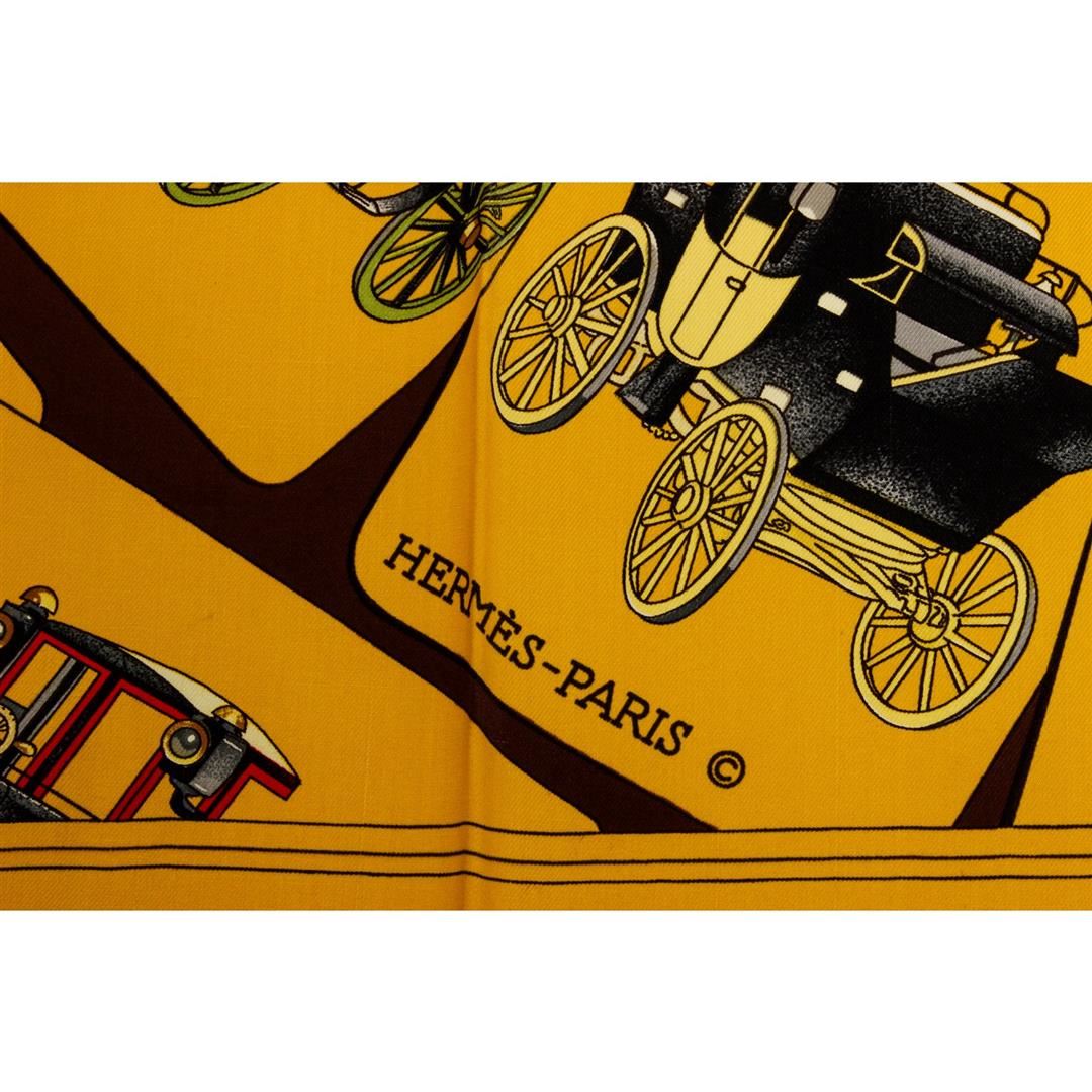 Hermes multicolor Carrosserie silk scarf with carriage pattern designed by Philippe Ledoux, hand rolled edges.